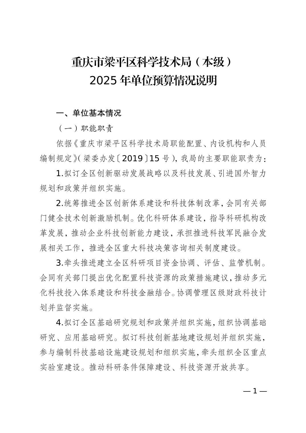 | 標題 | 重慶市梁平區科學技術局(本級)2025年單位預算情況說明 |