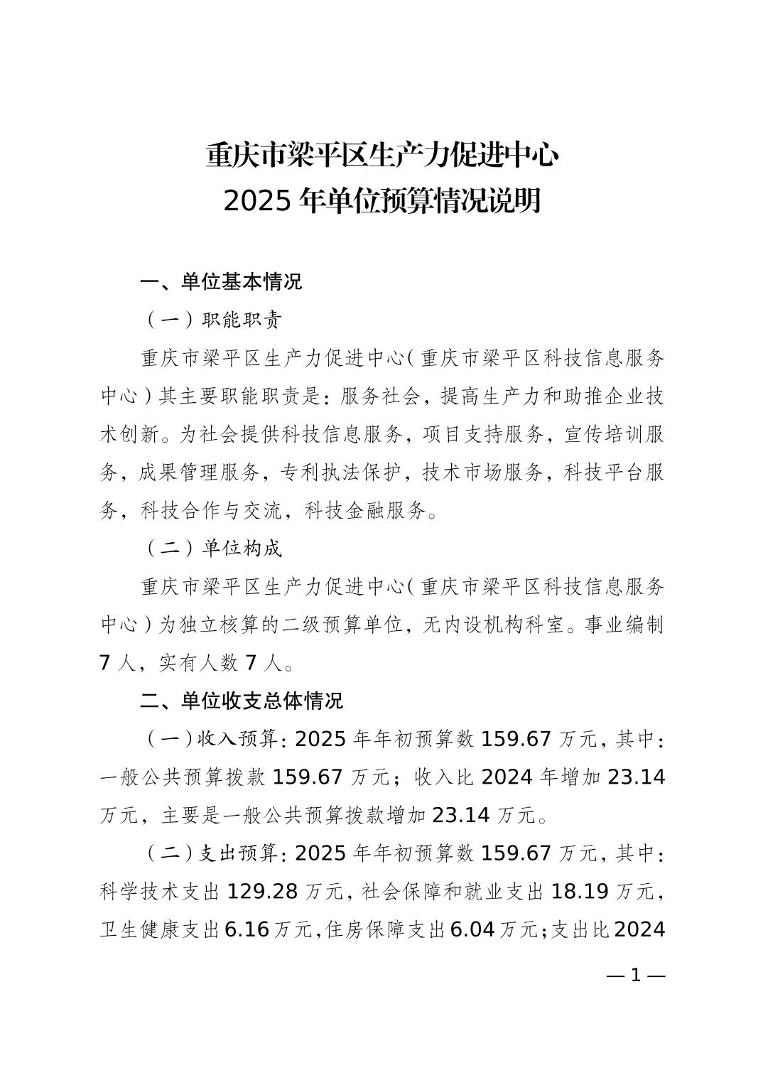 | 標題 | 重慶市梁平區生產力促進中心2025年單位預算情況說明 |