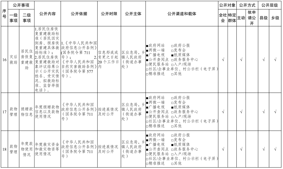 重慶市梁平區(qū)鄉(xiāng)鎮(zhèn)(街道)救災(zāi)領(lǐng)域基層政務(wù)公開標(biāo)準(zhǔn)目錄