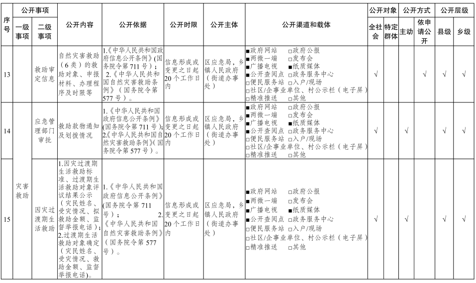 重慶市梁平區(qū)鄉(xiāng)鎮(zhèn)(街道)救災(zāi)領(lǐng)域基層政務(wù)公開標(biāo)準(zhǔn)目錄