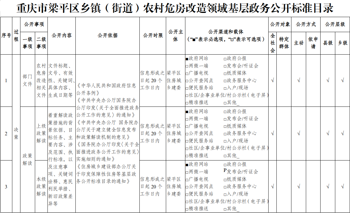 重慶市梁平區鄉鎮(街道)農村危房改造領域基層政務公開標準目錄