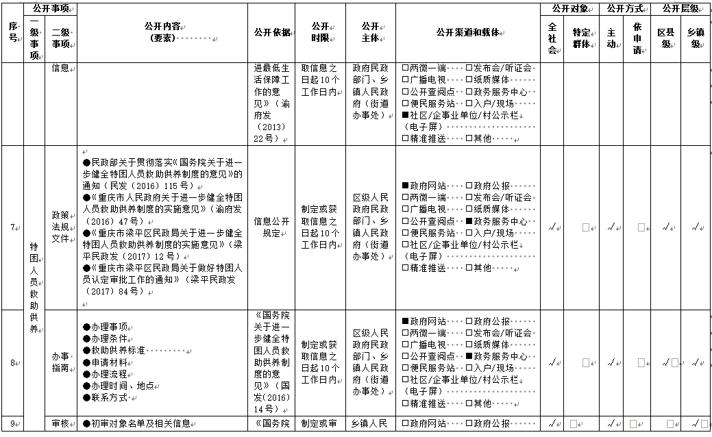 重慶市梁平區鄉鎮(街道)社會救助領域基層政務公開標準目錄