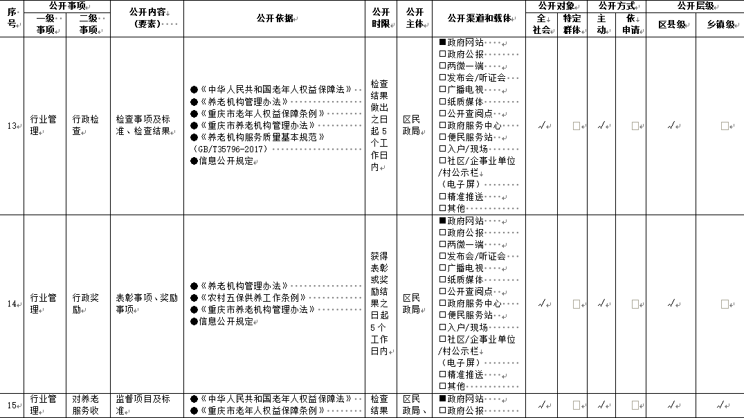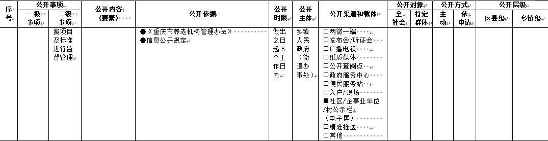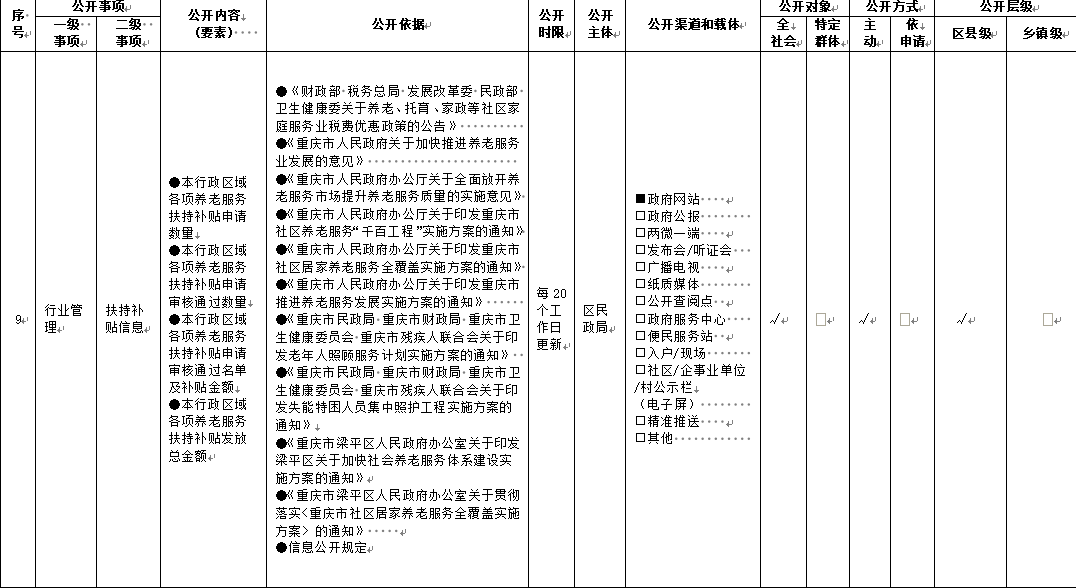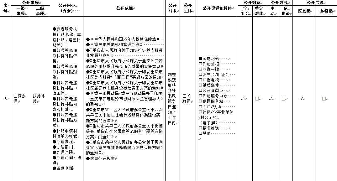 重慶市梁平區鄉鎮(街道)養老服務領域基層政務公開標準目錄