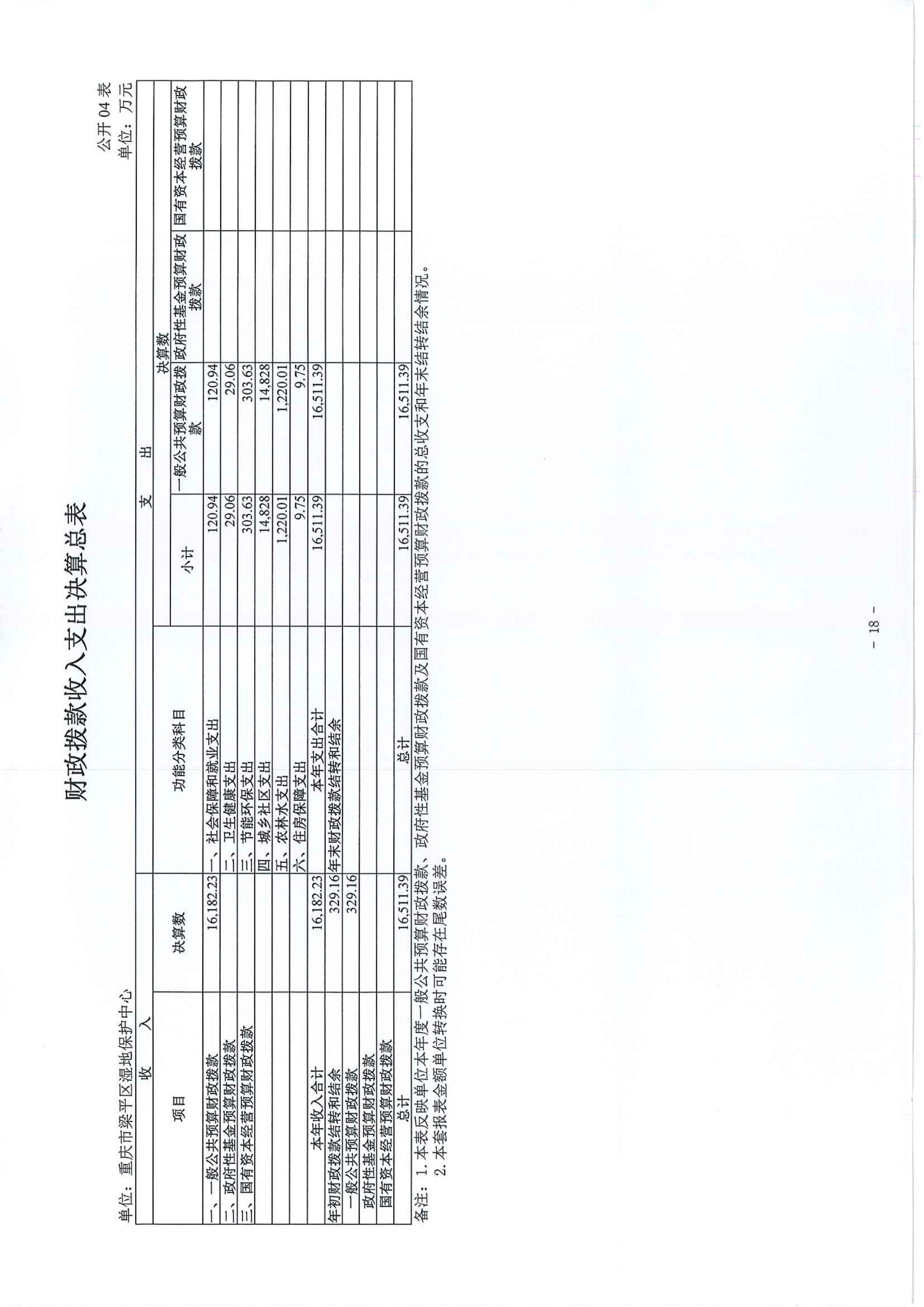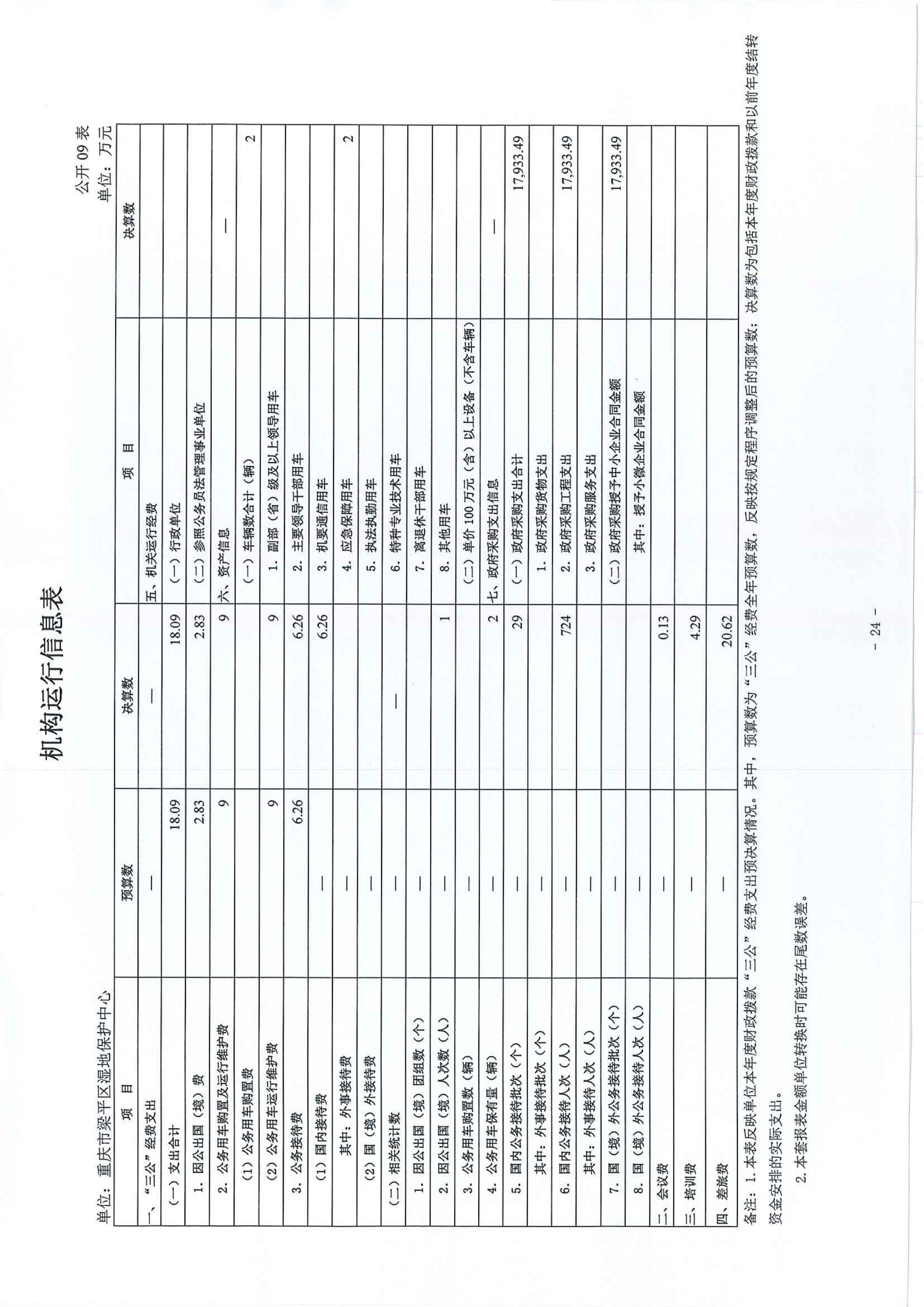 標題 重慶市梁平區濕地保護中心2024年度決算公開說明