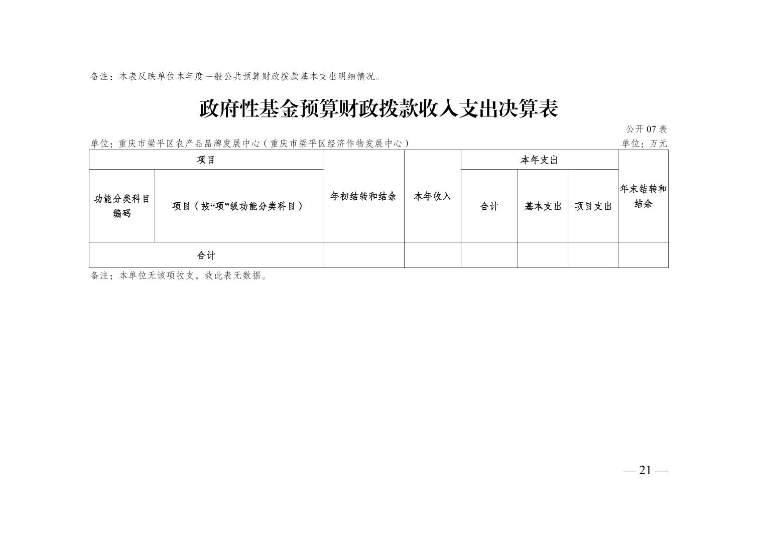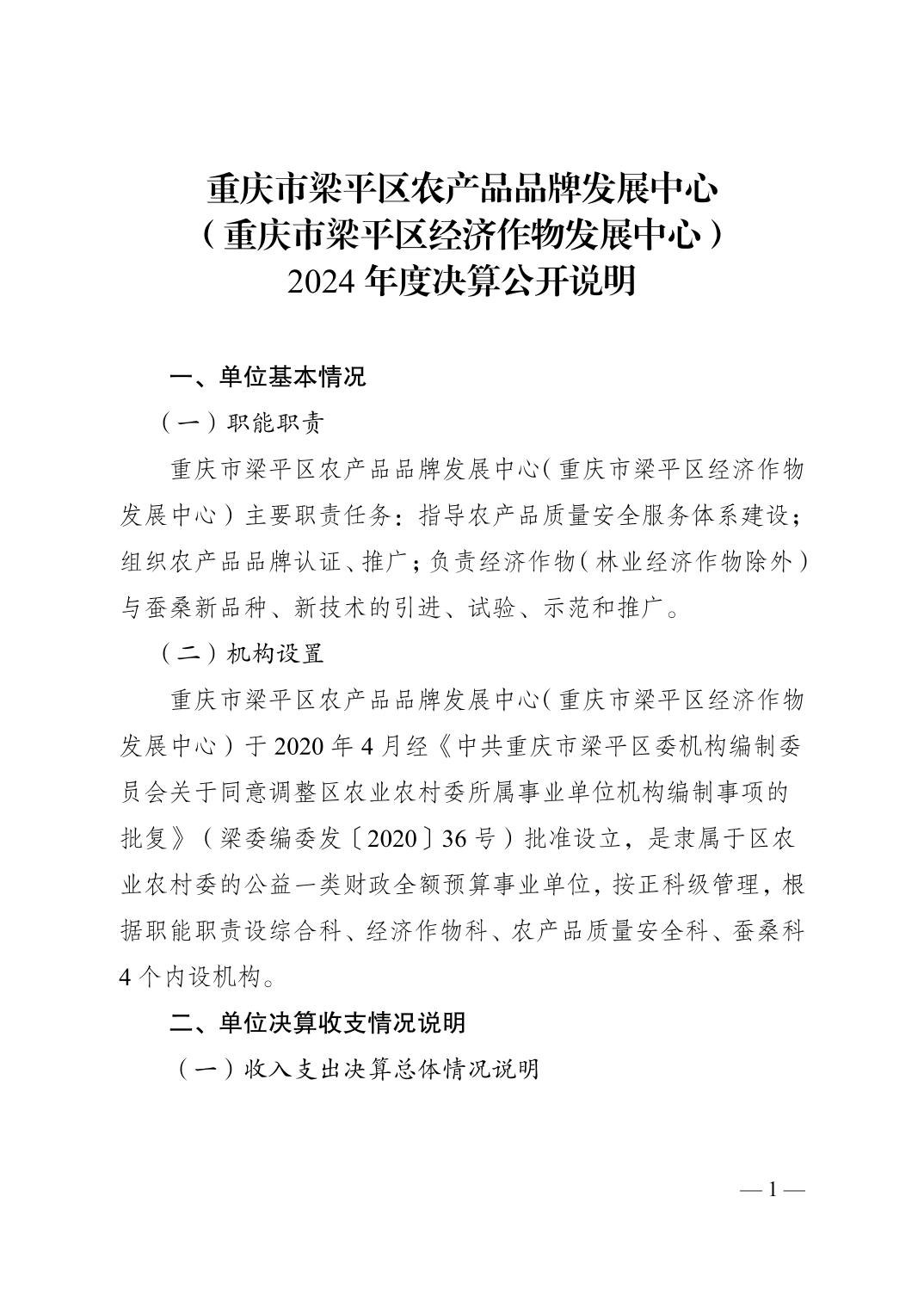 | 標題 | 重慶市梁平區農產品品牌發展中心 (重慶市梁平區經濟作物發展中心)2024年度決算公開說明 |