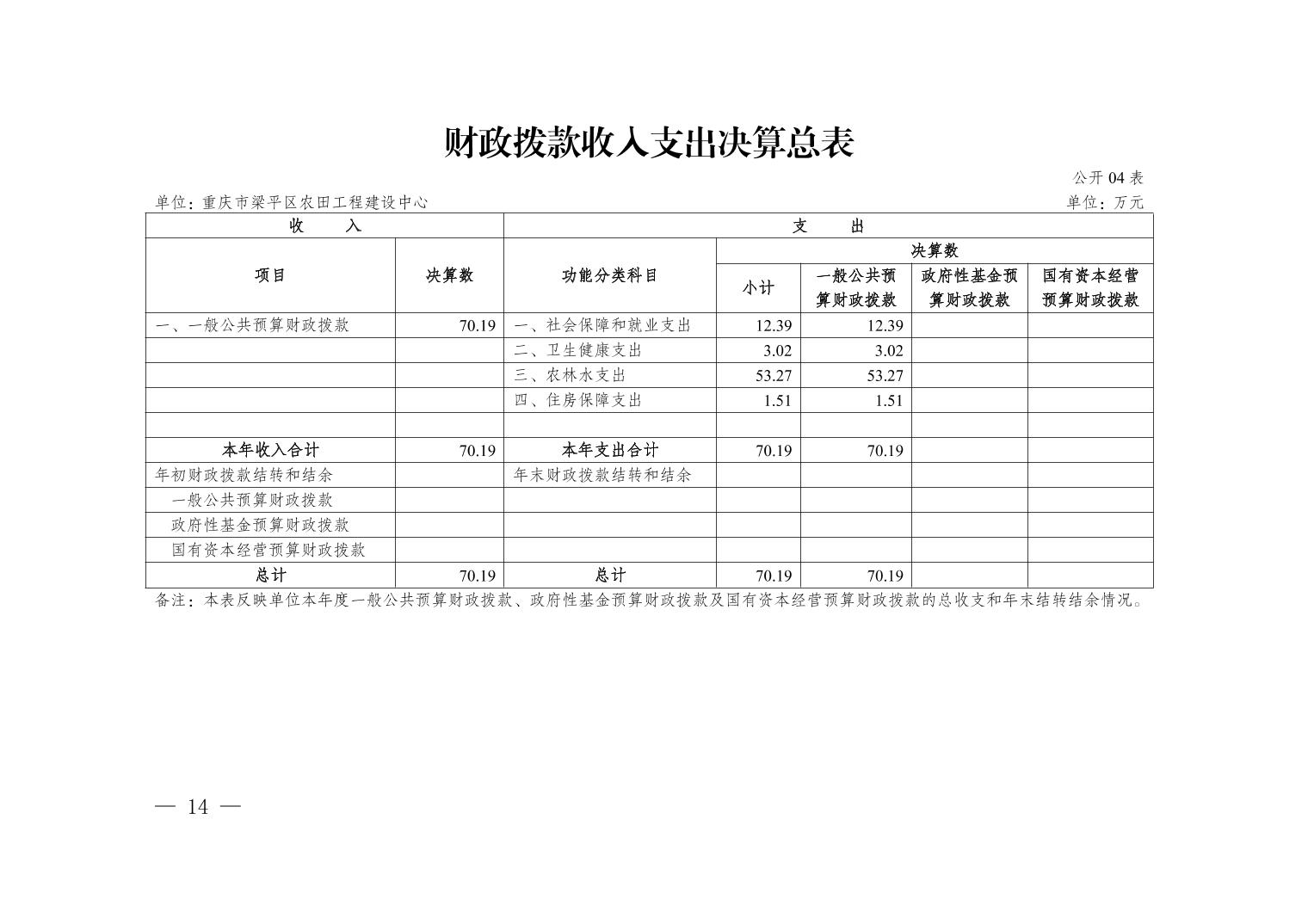 | 標題 | 重慶市梁平區(qū)農田工程建設中心2024年度決算公開說明 |
