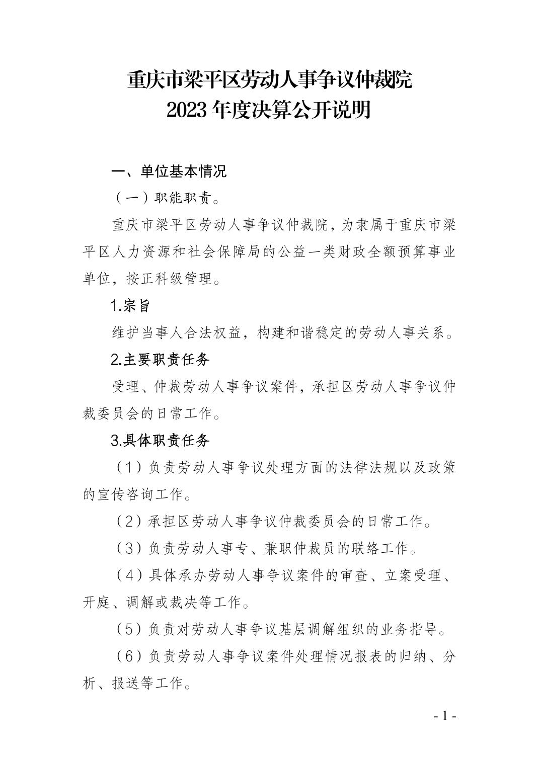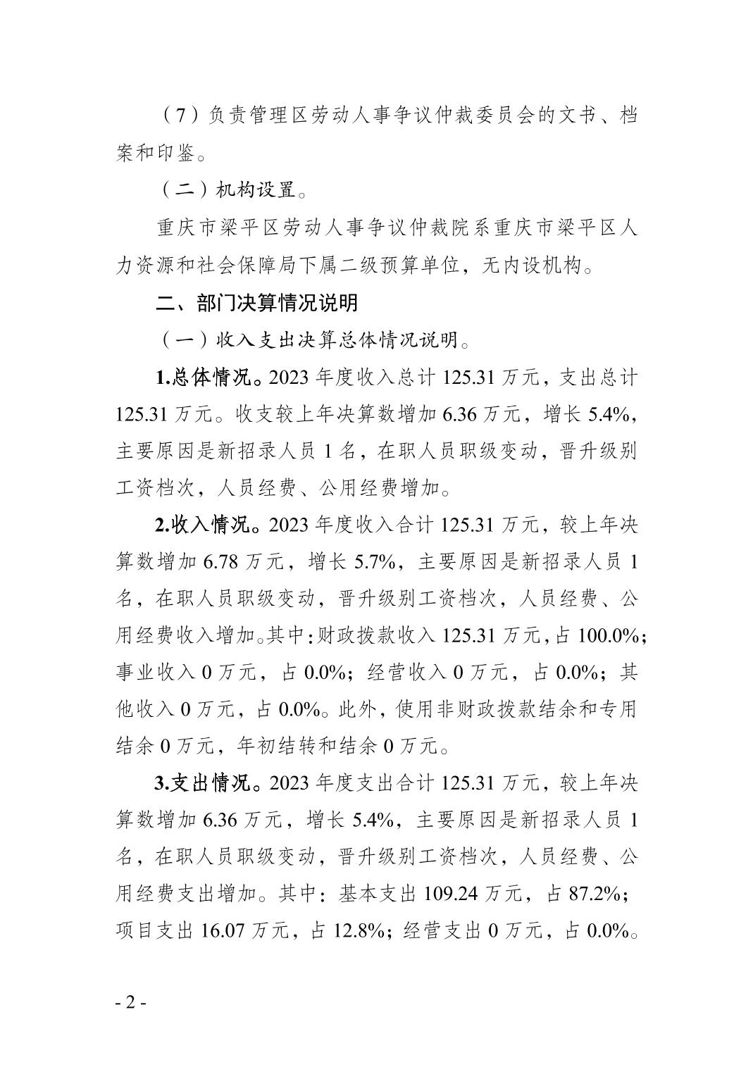 | 標題 | 重慶市梁平區勞動人事爭議仲裁院 2023 年度決算公開說明 |