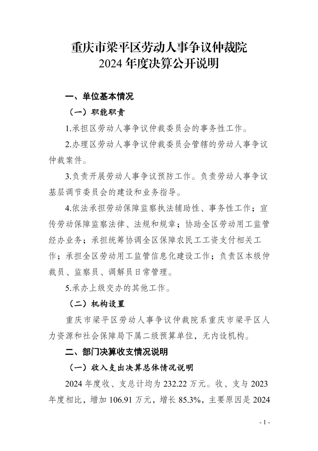 | 標題 | 重慶市梁平區勞動人事爭議仲裁院 2024 年度決算公開說明 |