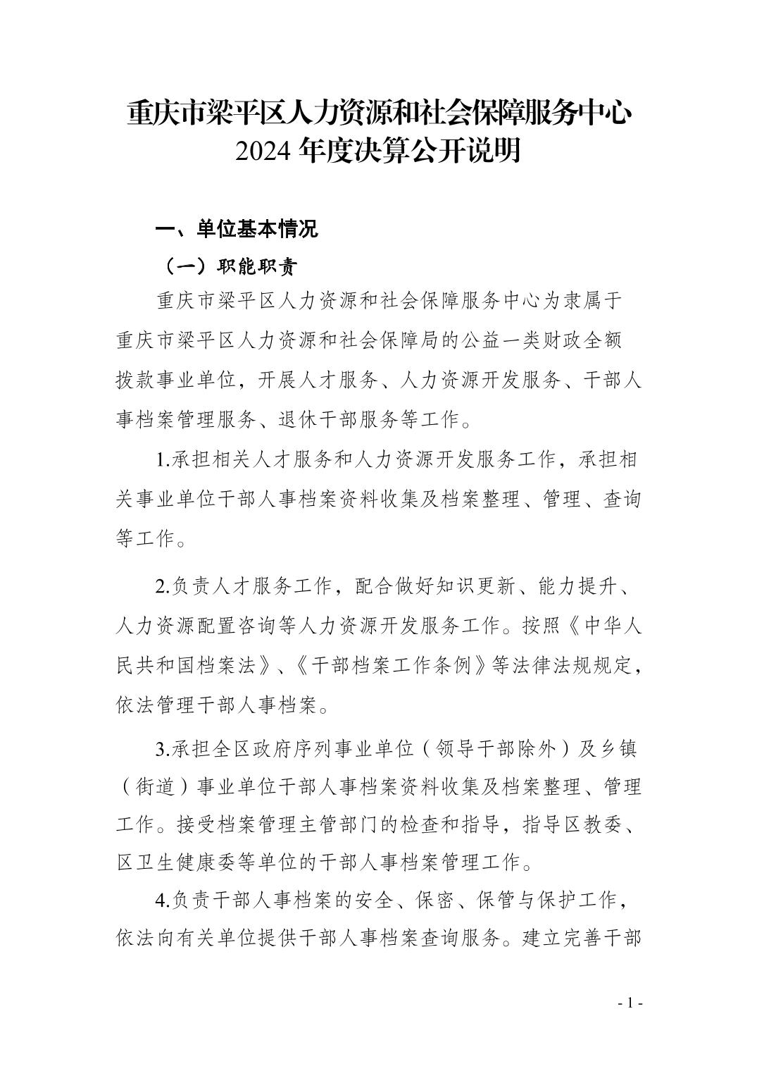 | 標題 | 重慶市梁平區人力資源和社會保障服務中心 2024 年度決算公開說明 |