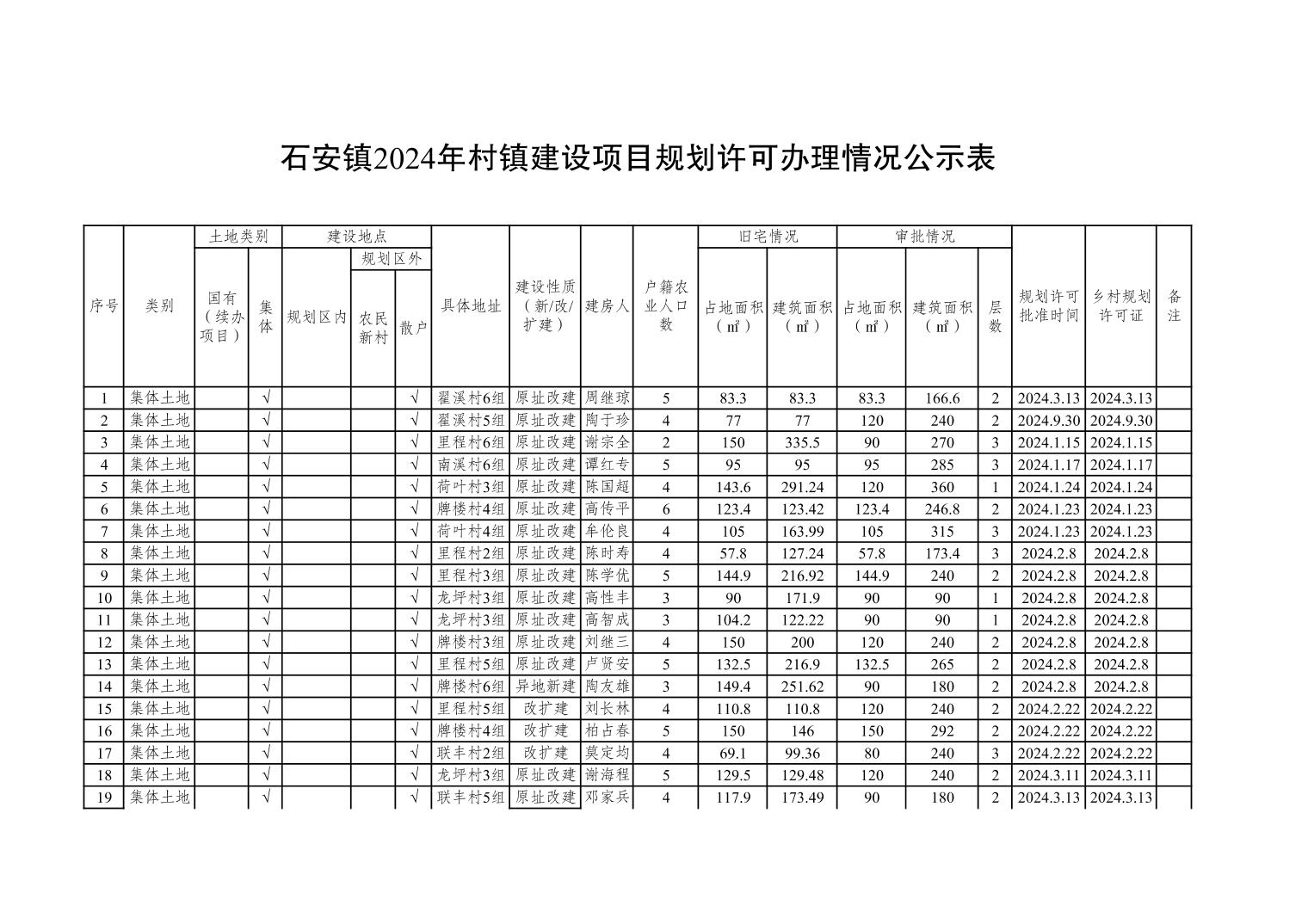 | 標題 | 石安鎮(zhèn)2024年村鎮(zhèn)建設(shè)項目規(guī)劃許可辦理情況公示表 |