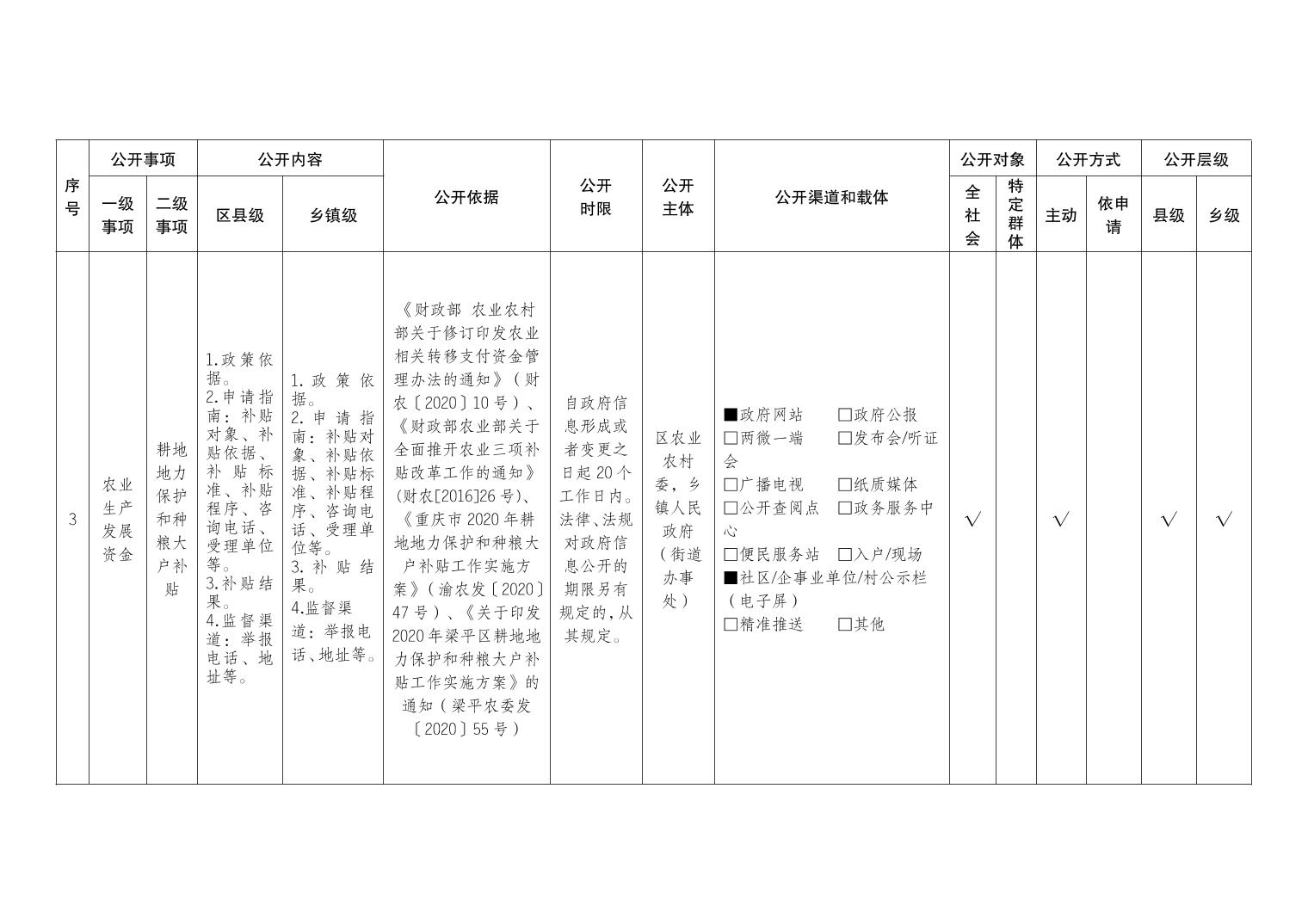 | 標題 | 重慶市梁平區涉農補貼領域基層政務公開標準目錄 |