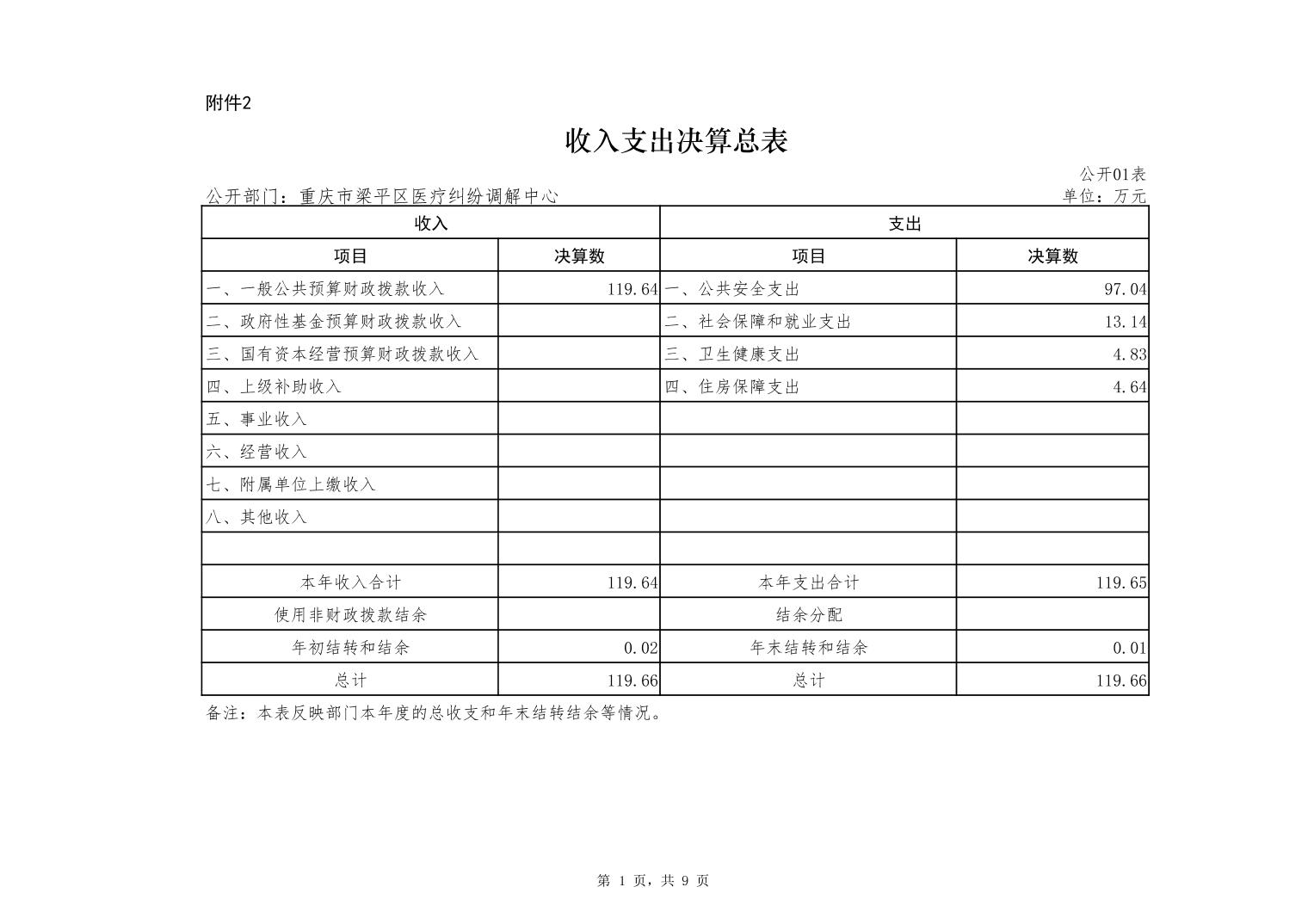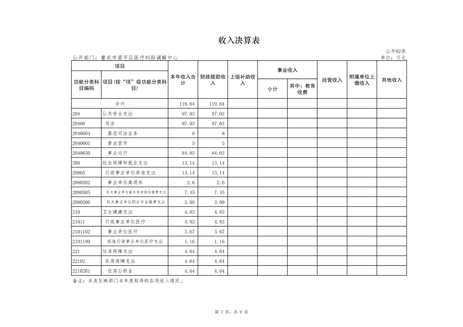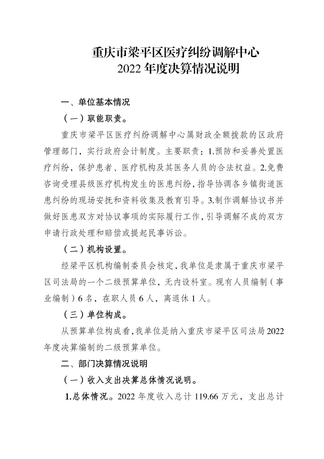 標題 重慶市梁平區醫療糾紛調解中心2022年度部門決算公開