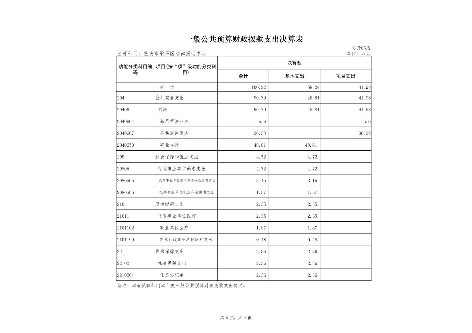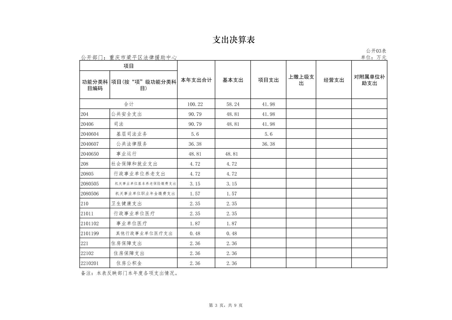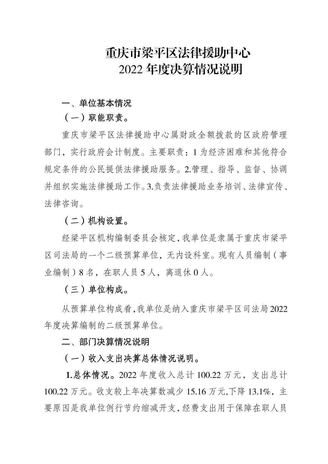 標題 重慶市梁平區法律援助中心2022年度部門決算公開