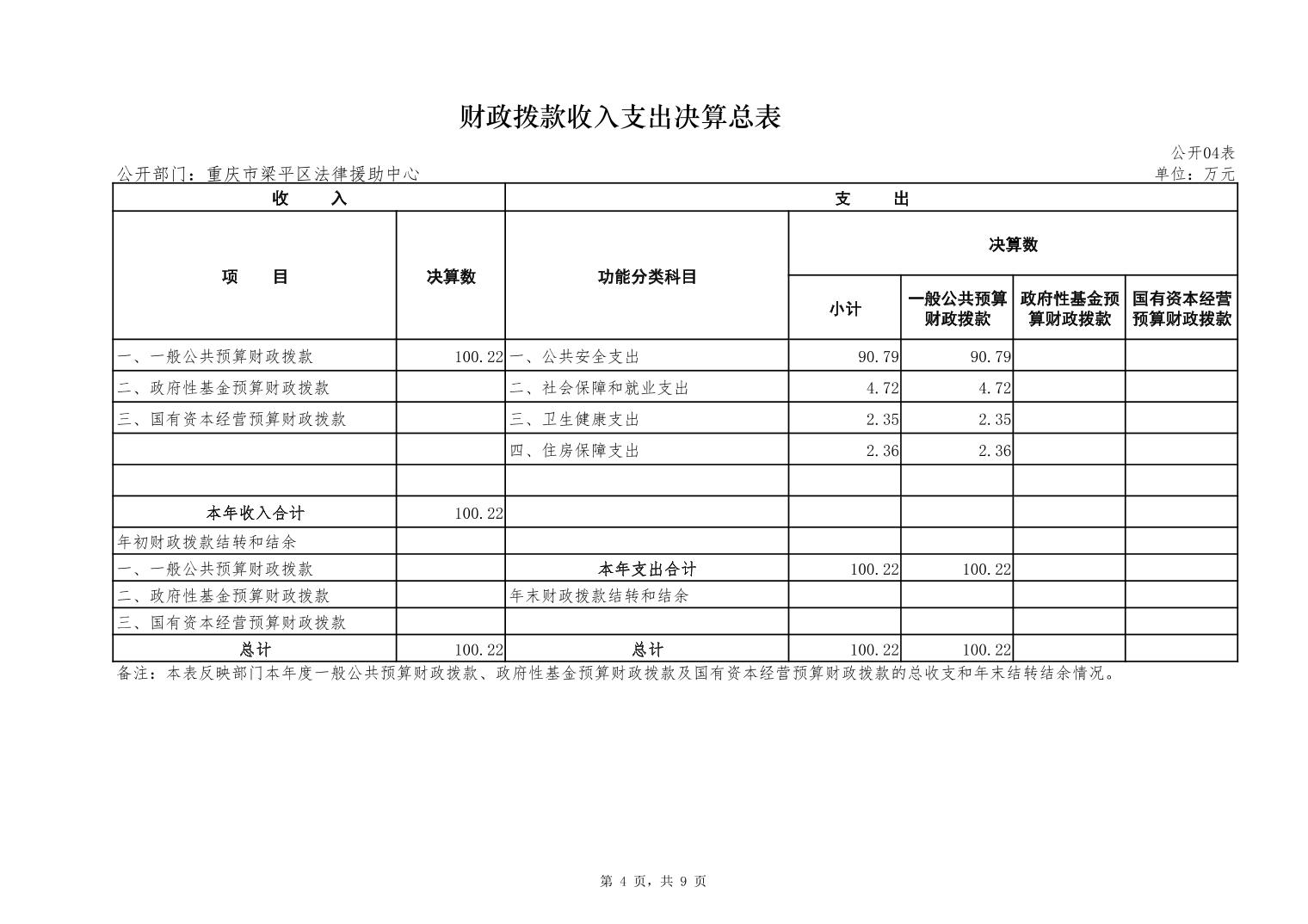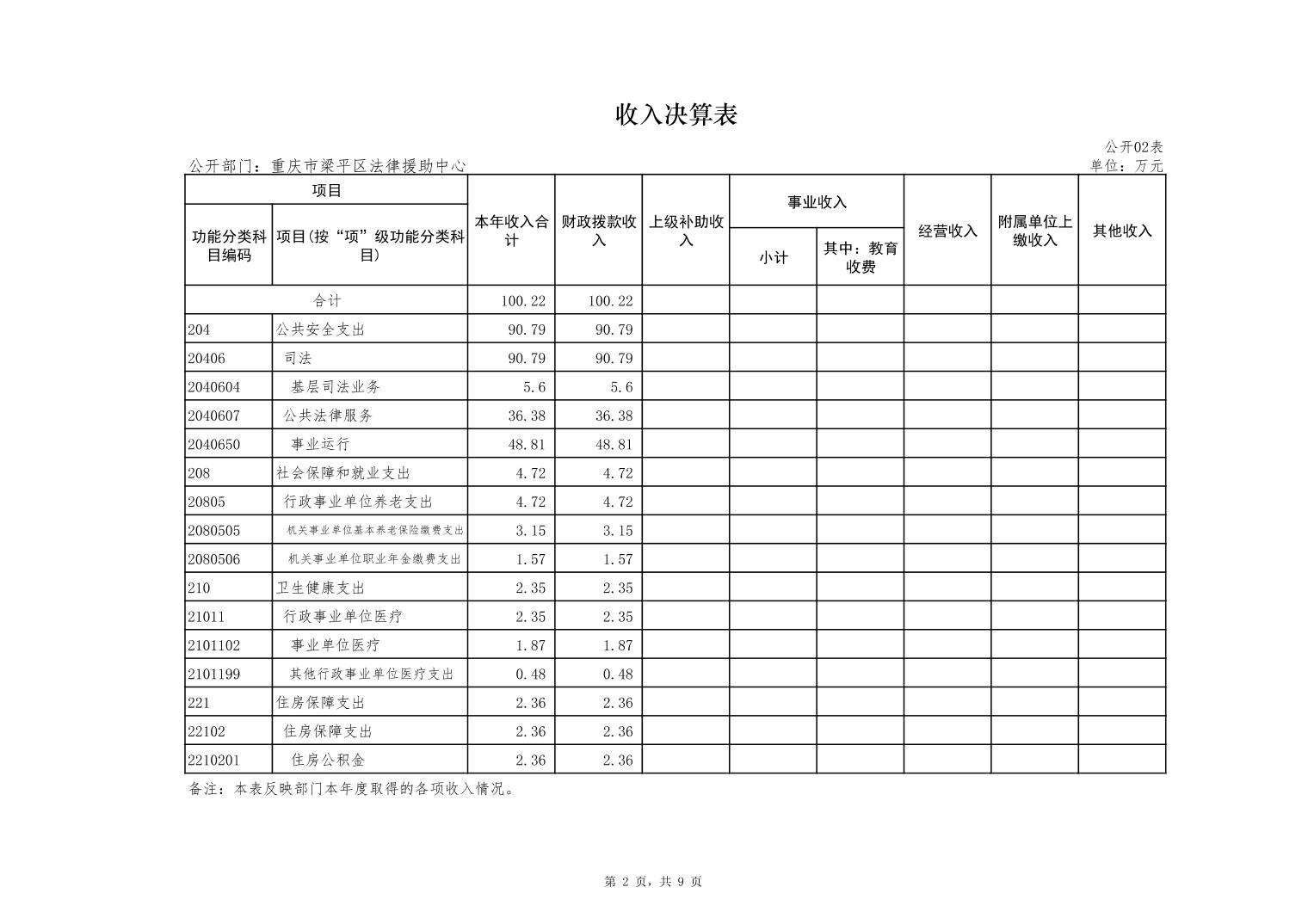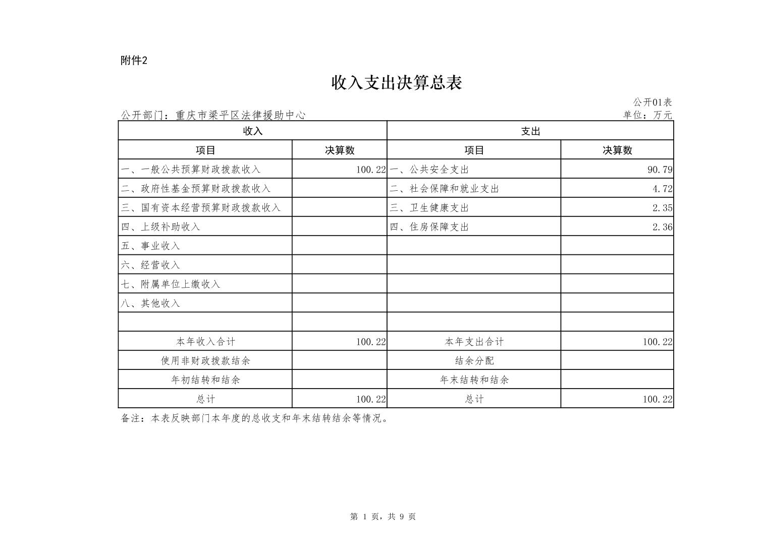 標題 重慶市梁平區法律援助中心2022年度部門決算公開