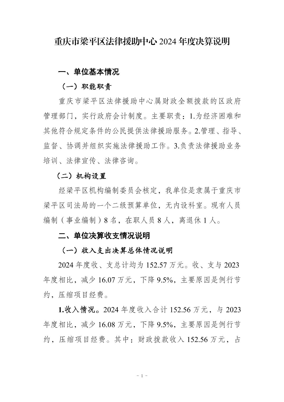 | 標題 | 重慶市梁平區法律援助中心2024年度決算公開 |