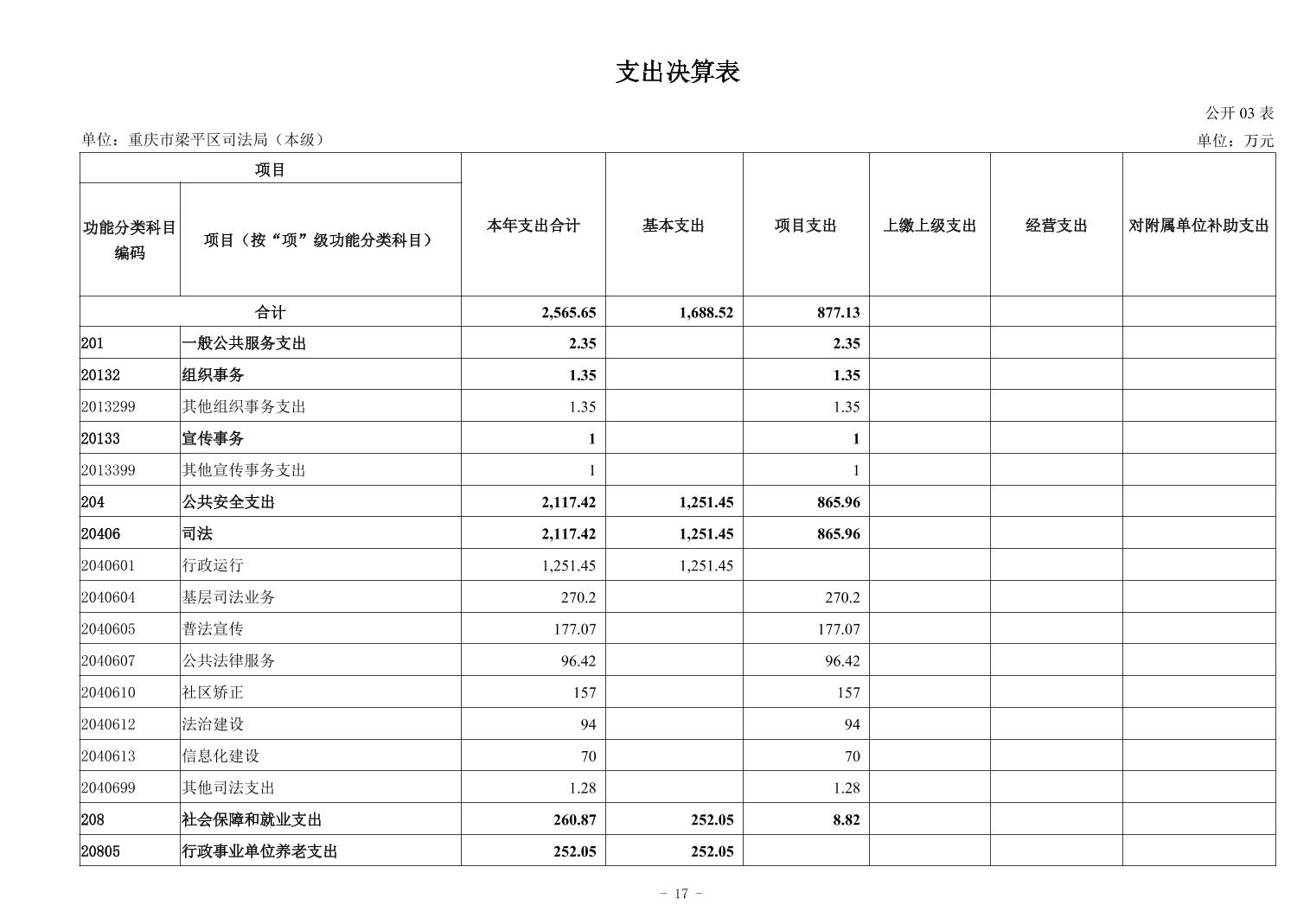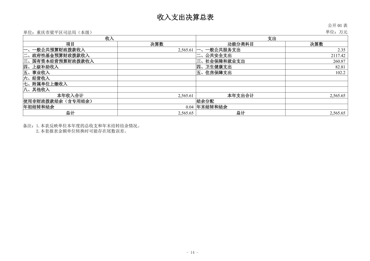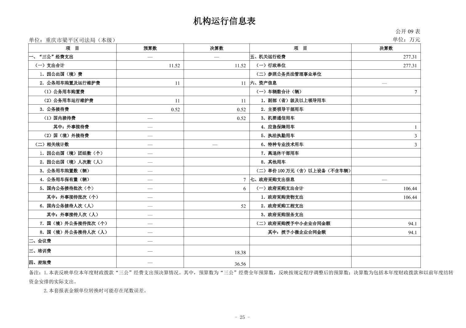標題 重慶市梁平區司法局(本級)2024年度決算公開