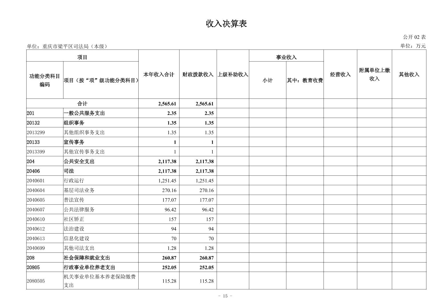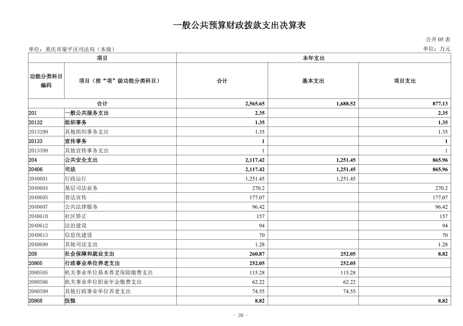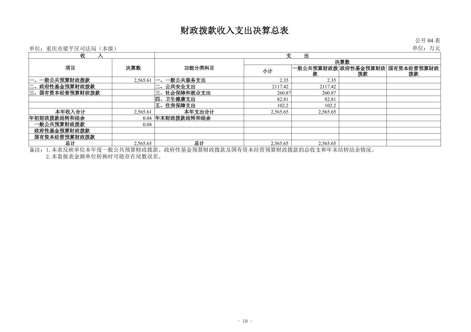 標題 重慶市梁平區司法局(本級)2024年度決算公開