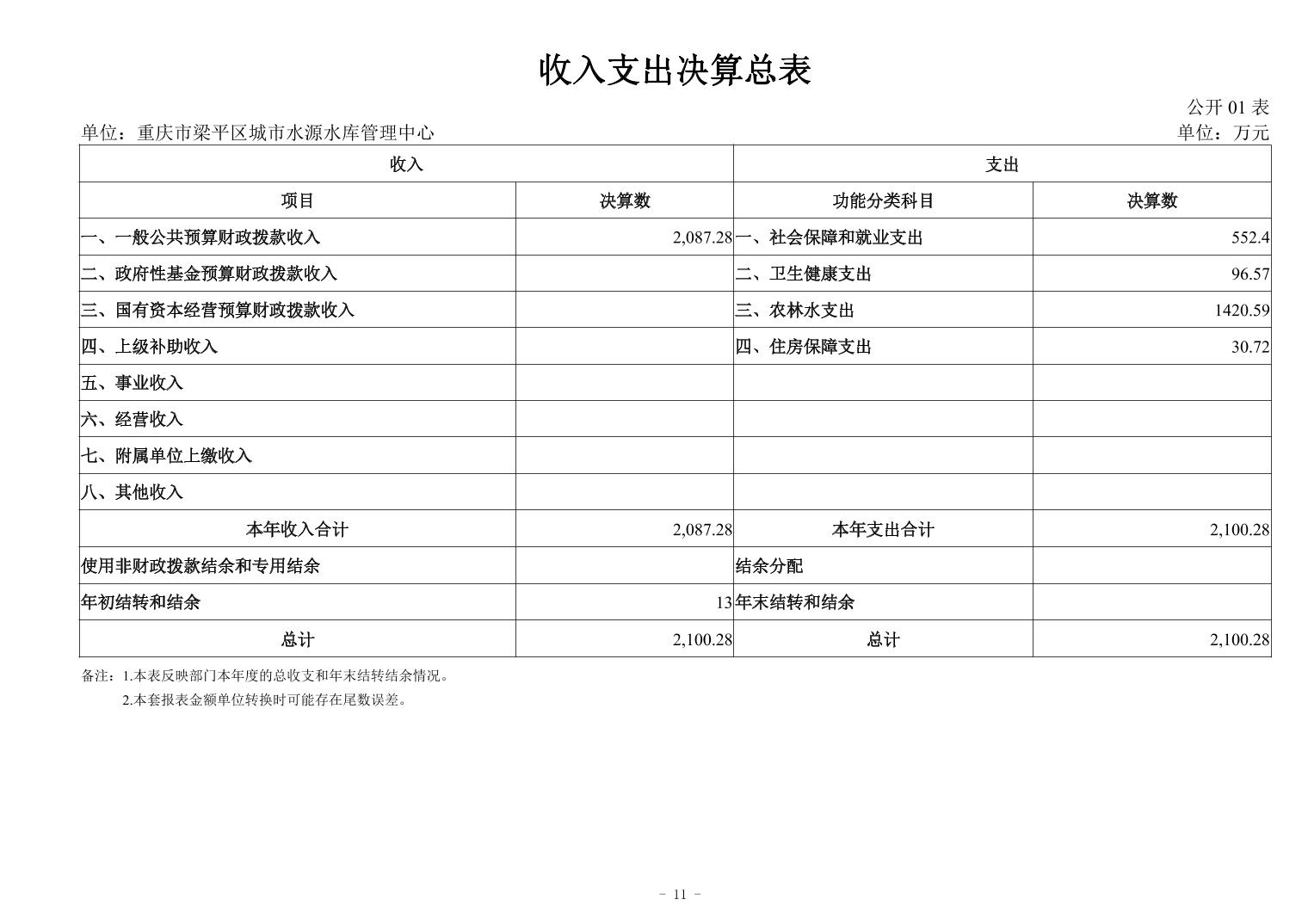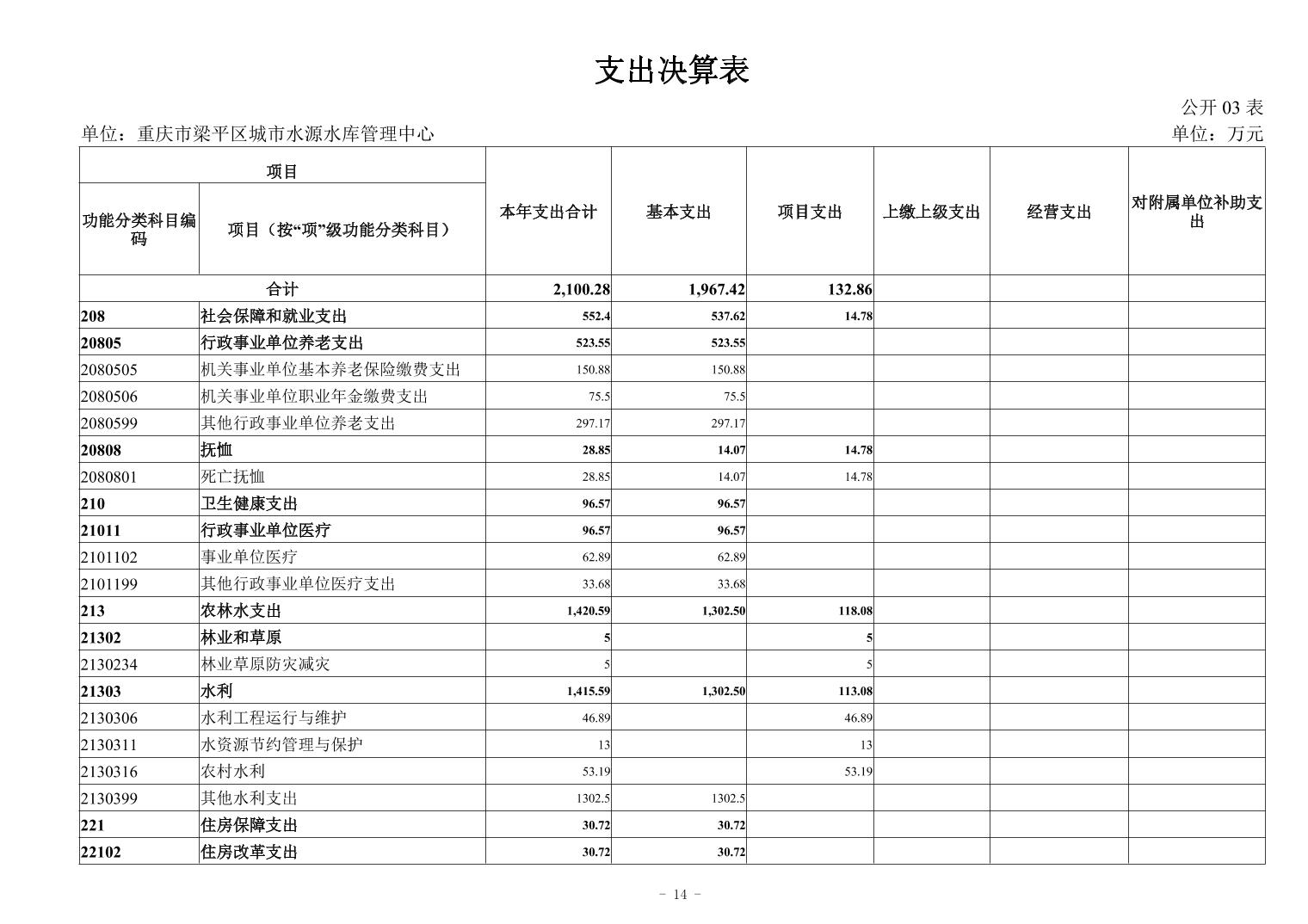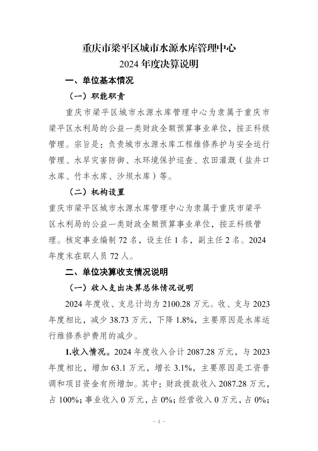 標題 重慶市梁平區城市水源水庫中心2024年度決算公開說明及報表