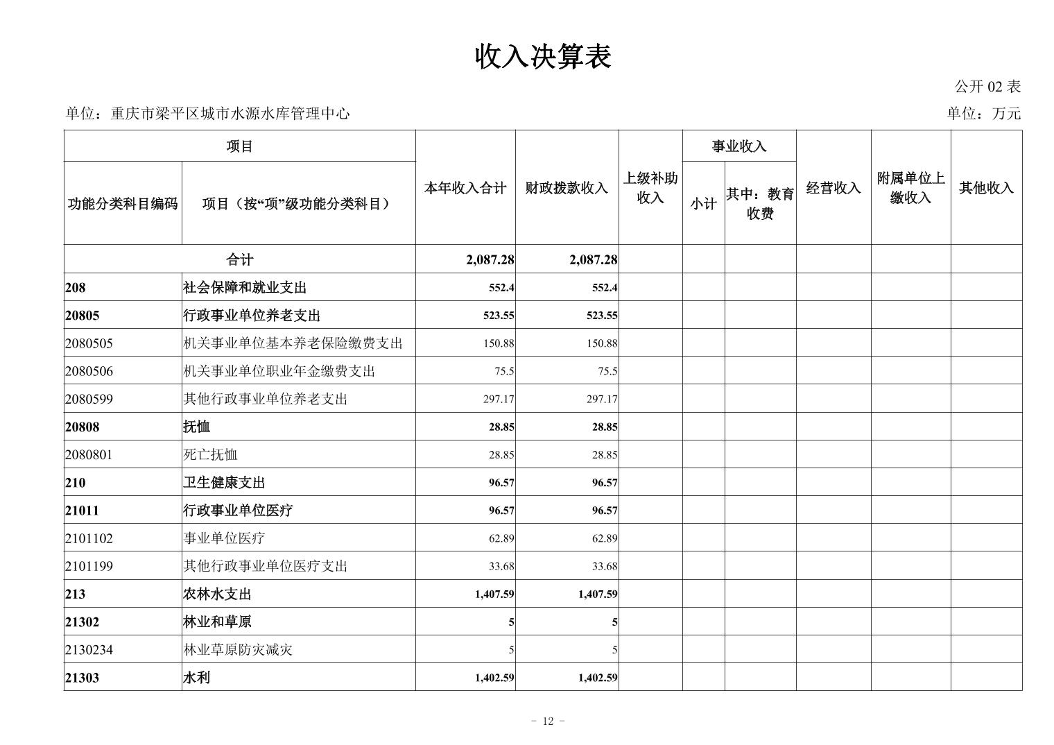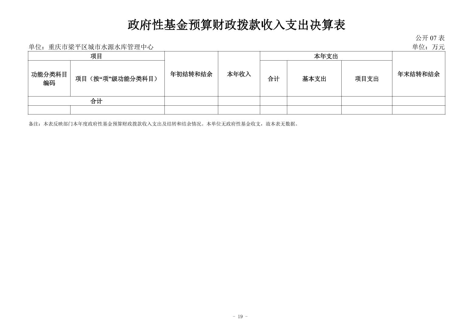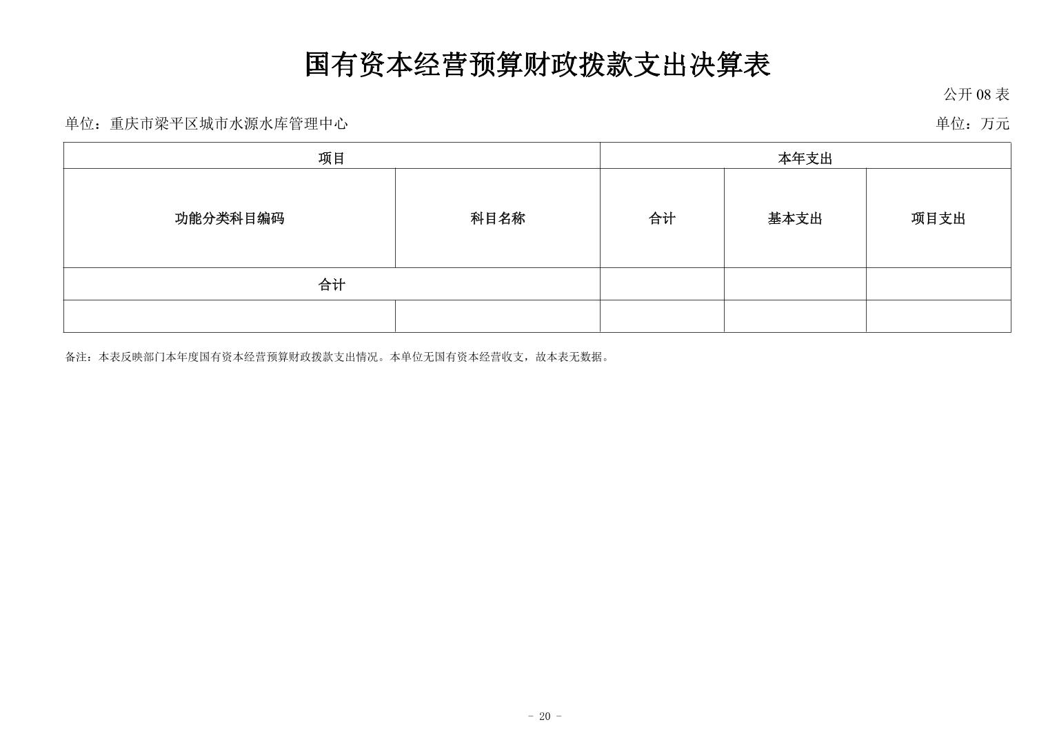標題 重慶市梁平區城市水源水庫中心2024年度決算公開說明及報表