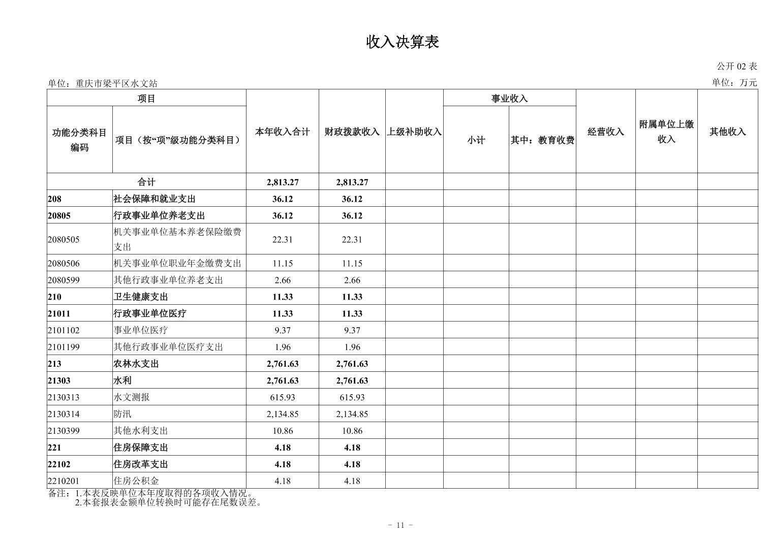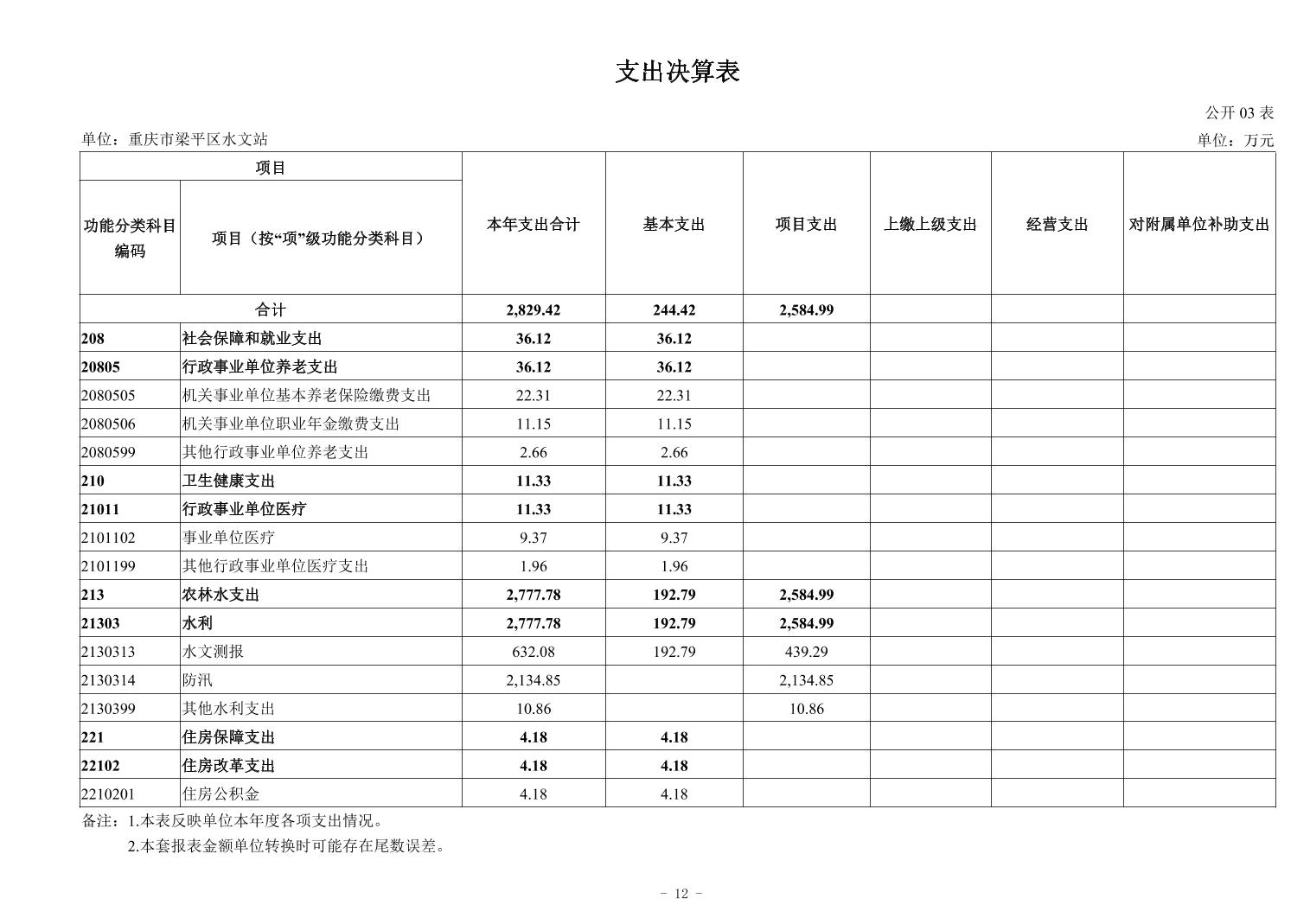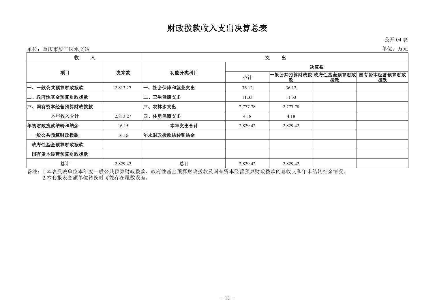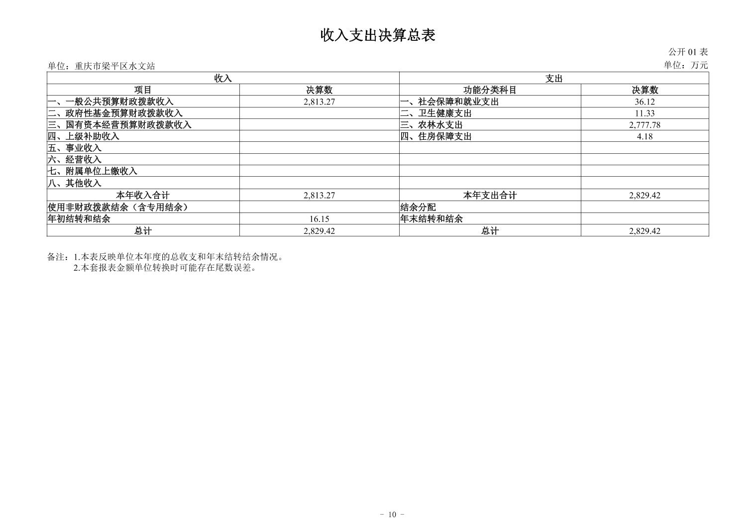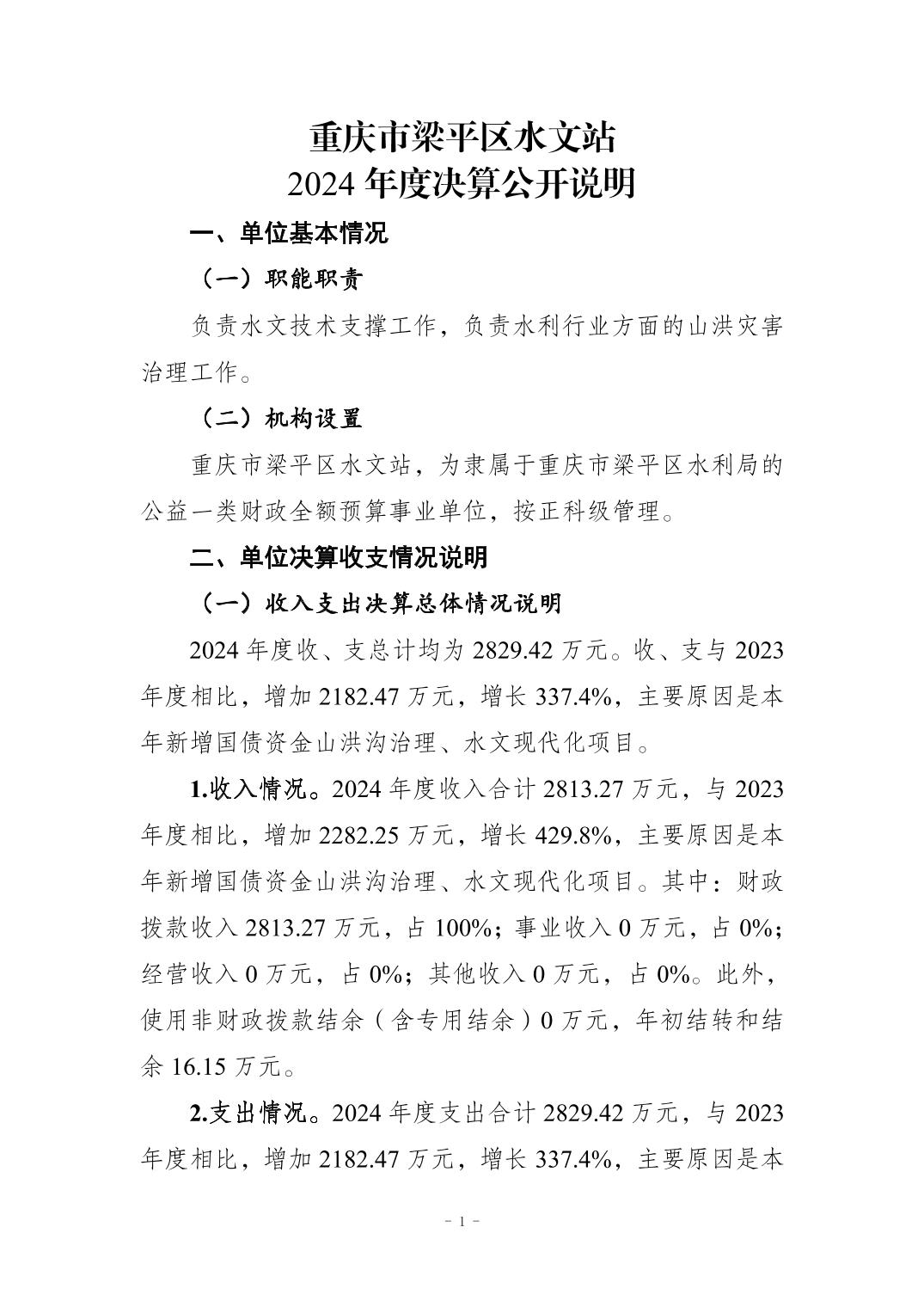 標(biāo)題 重慶市梁平區(qū)水文站2024年度決算公開說明及報表