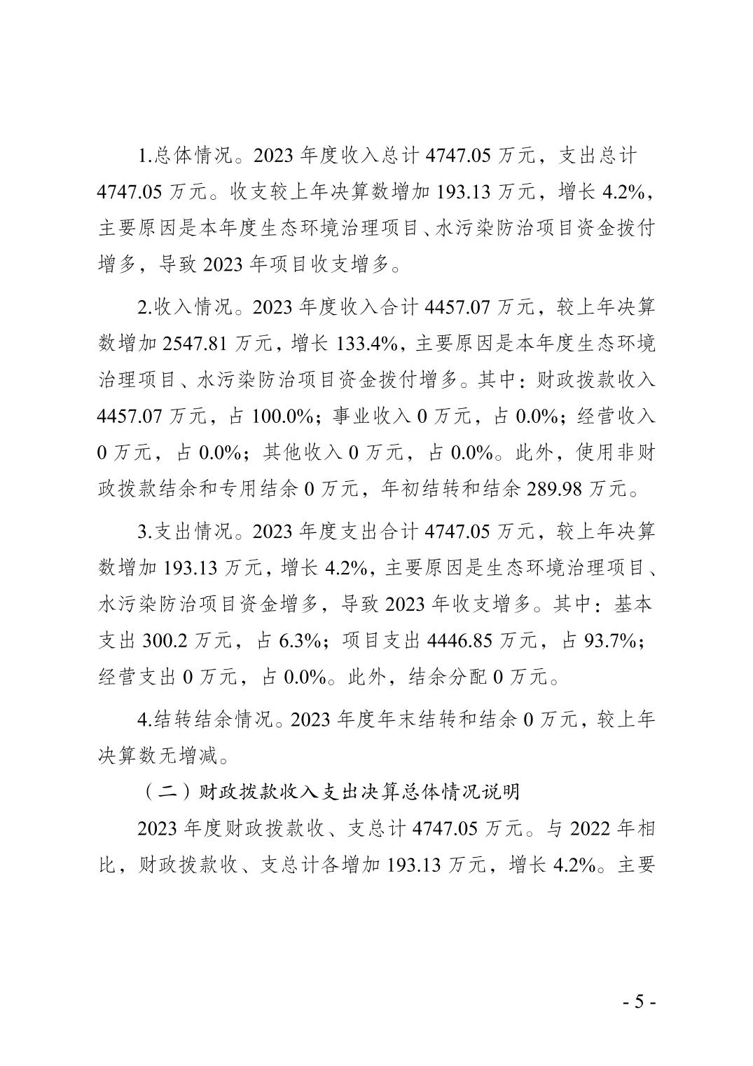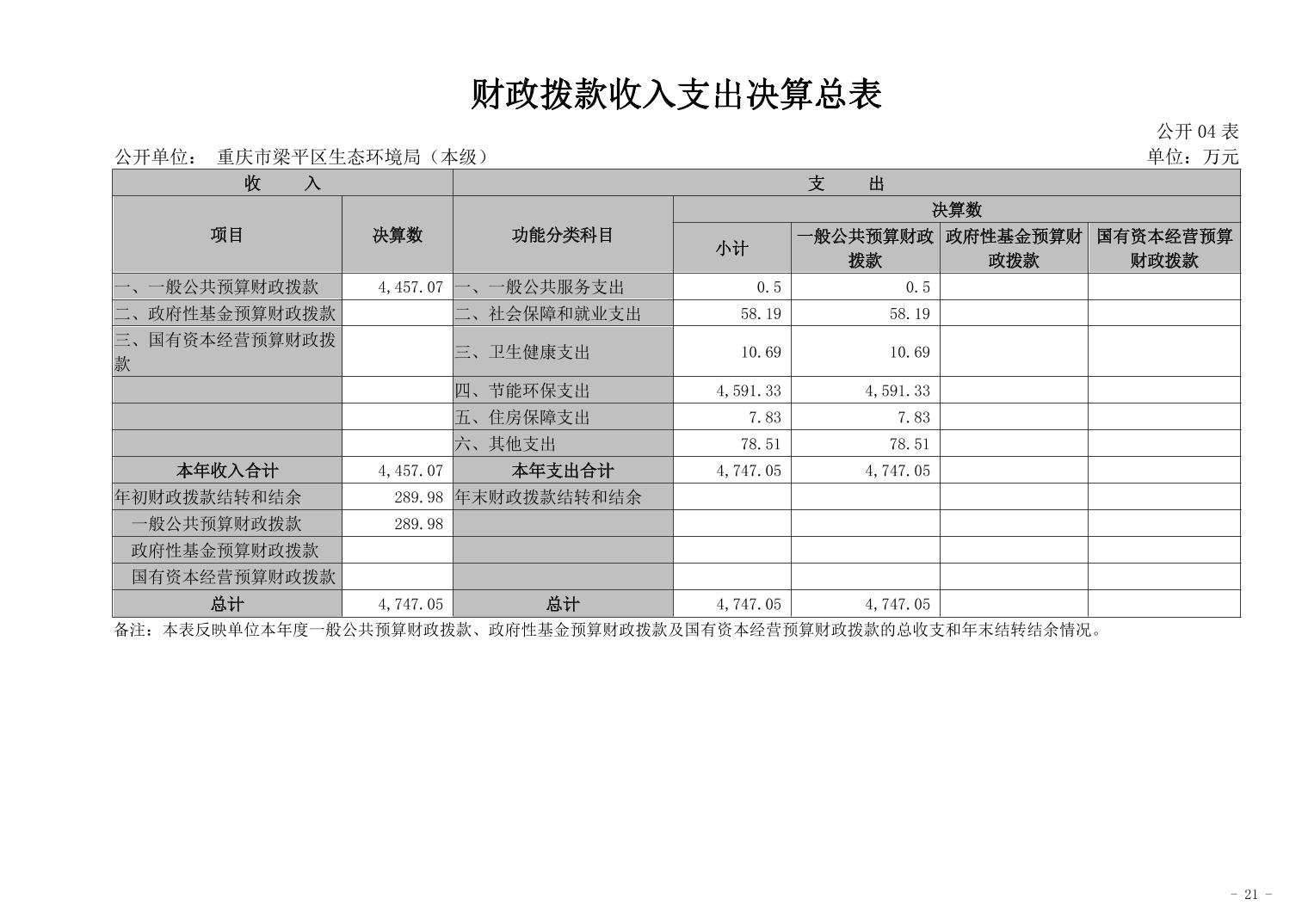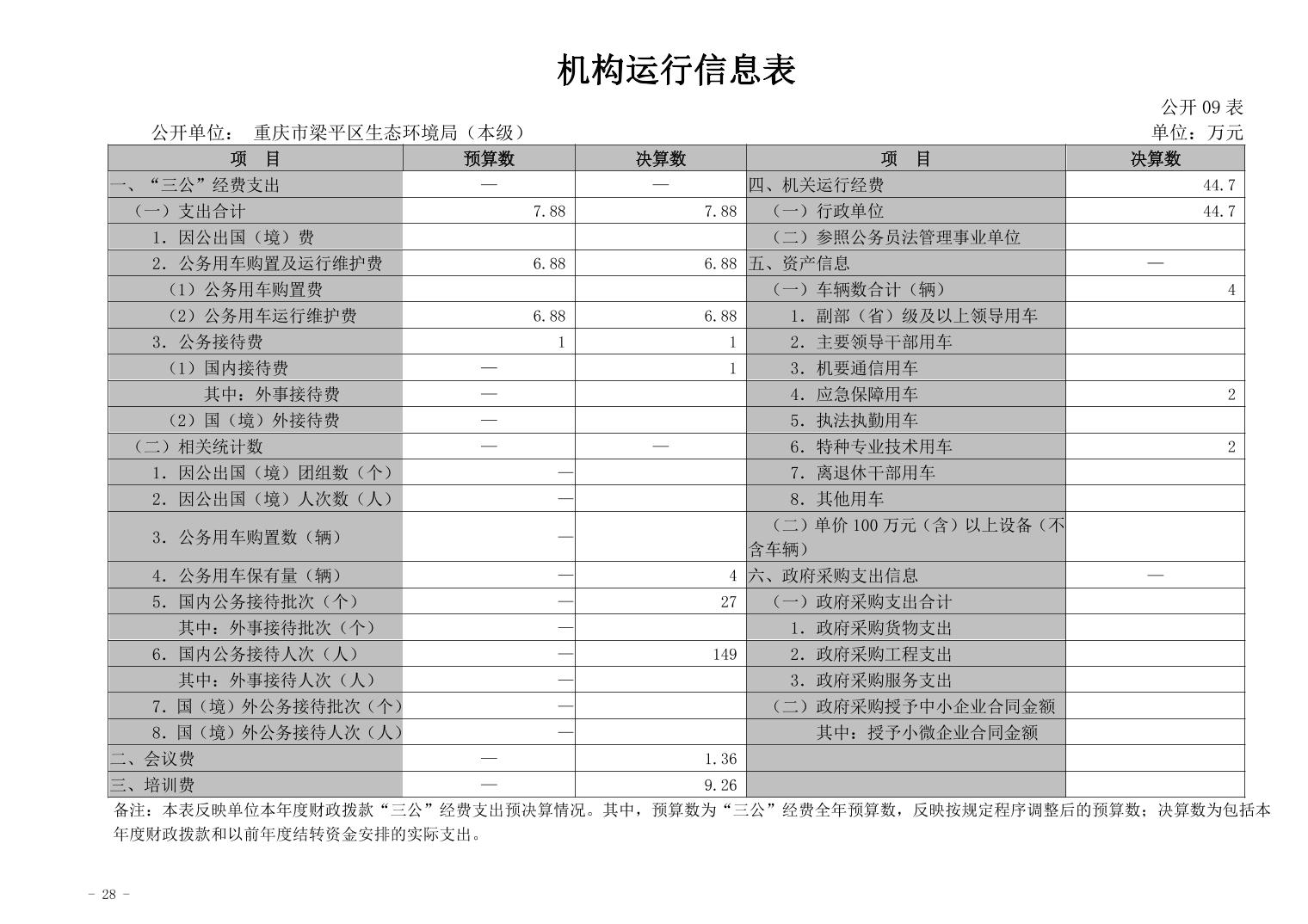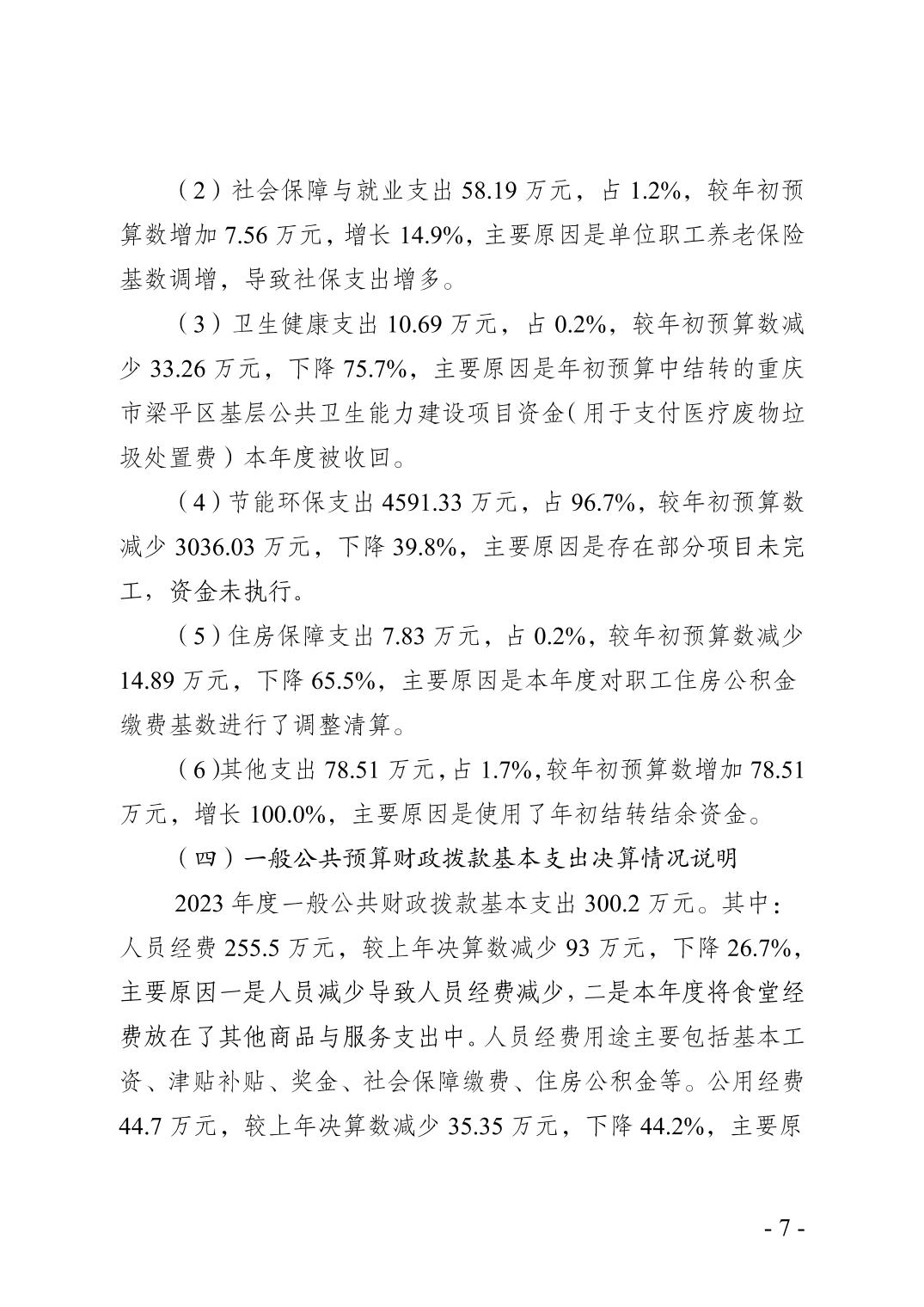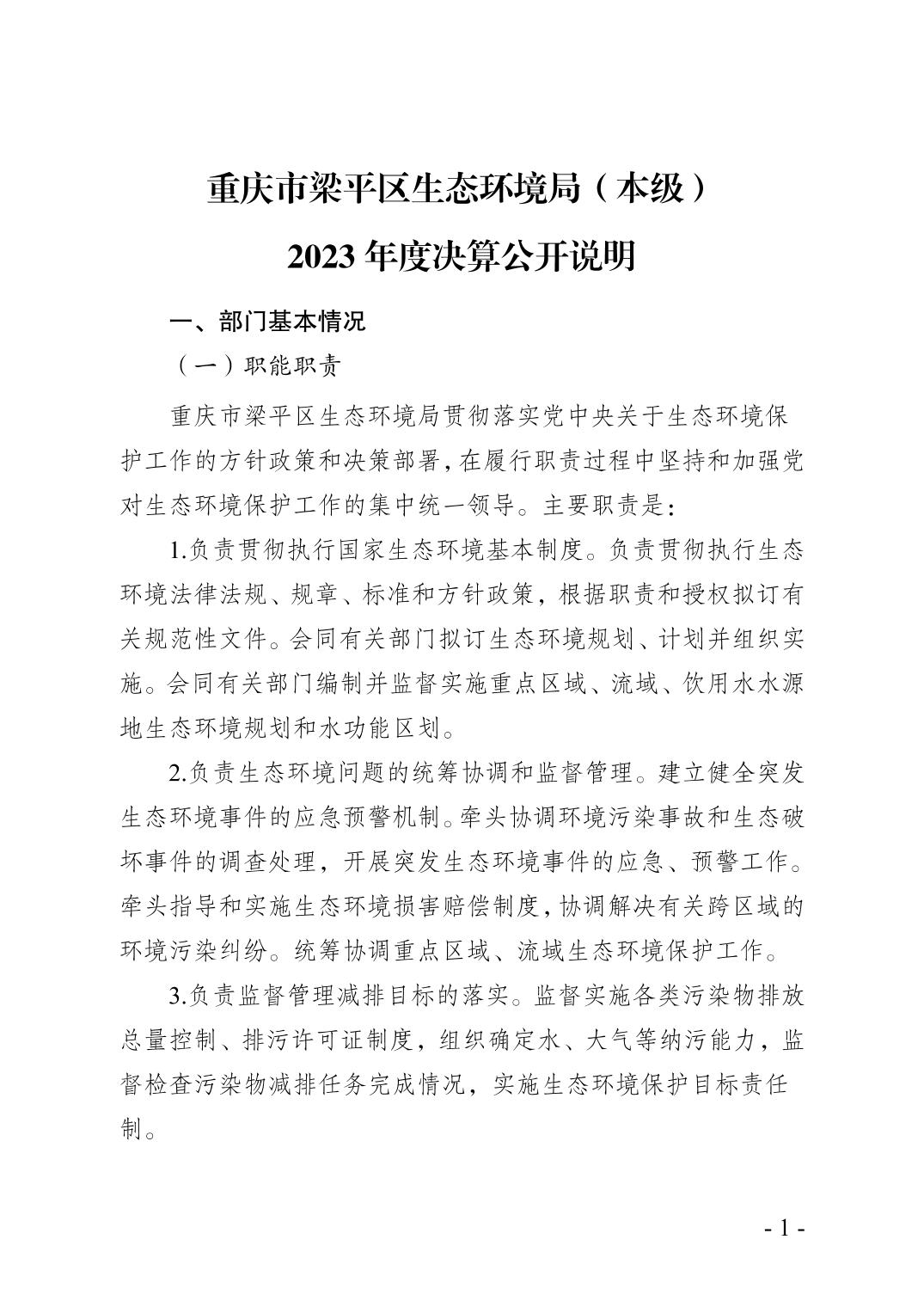 標題 重慶市梁平區生態環境局(本級)2023年度決算公開說明