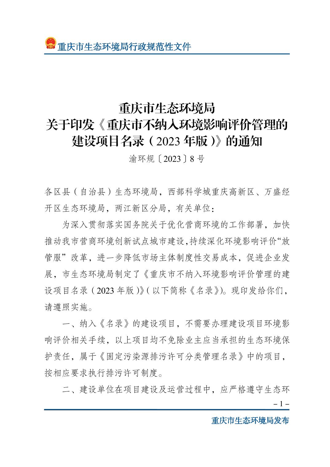 發(fā)文字號(hào) 渝環(huán)規(guī)〔2023〕8號(hào)