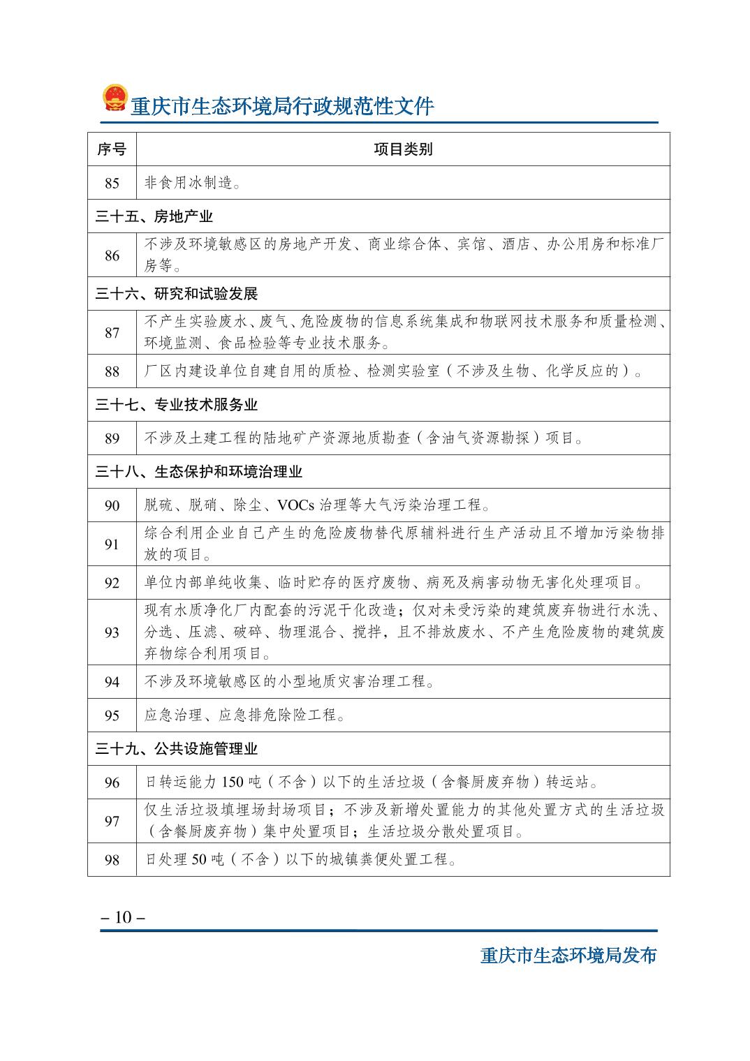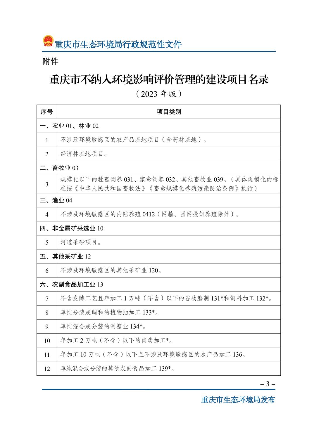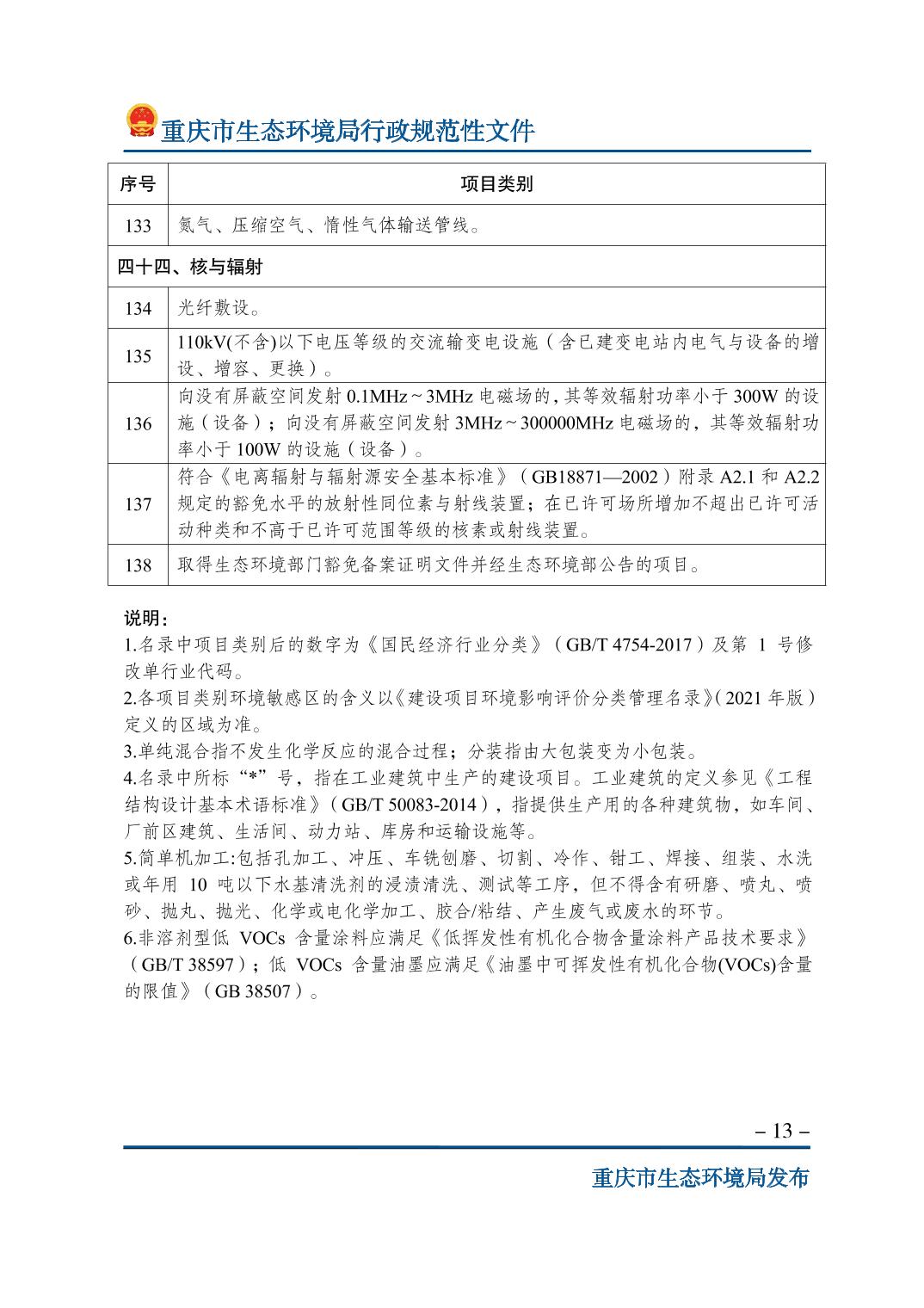 標(biāo)題 重慶市生態(tài)環(huán)境局關(guān)于印發(fā)《重慶市不納入環(huán)境影響評(píng)價(jià)管理的建設(shè)項(xiàng)目名錄(2023年版)》的通知
