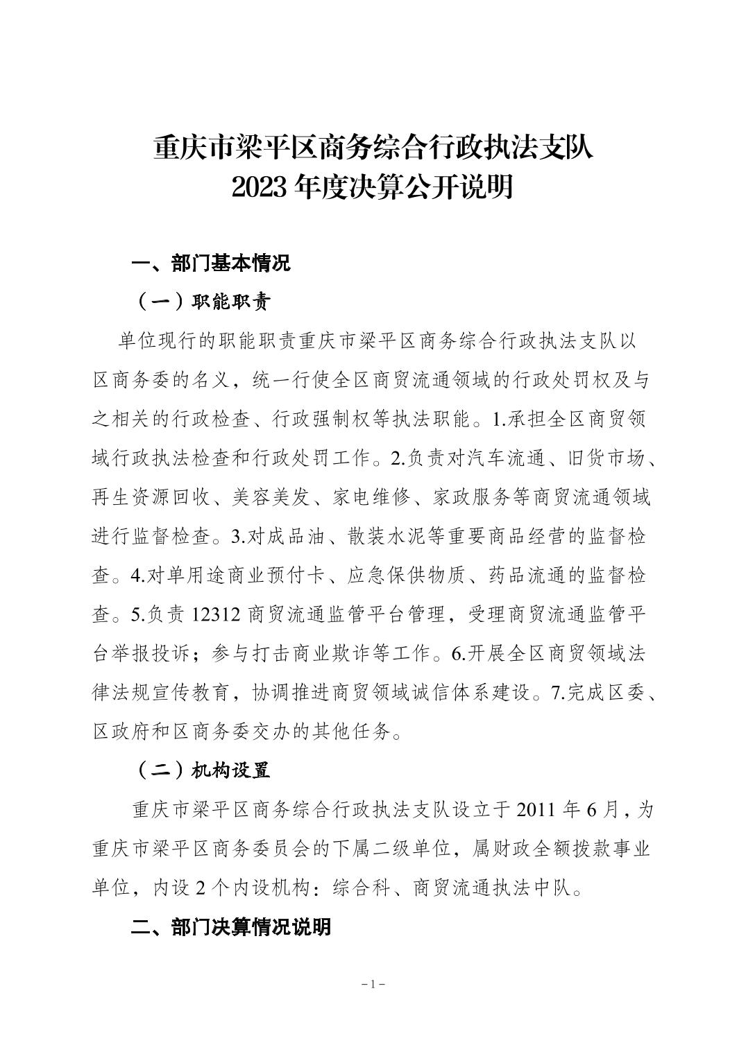 標(biāo)題 重慶市梁平區(qū)商務(wù)綜合行政執(zhí)法支隊(duì)2023年度決算公開(kāi)說(shuō)明