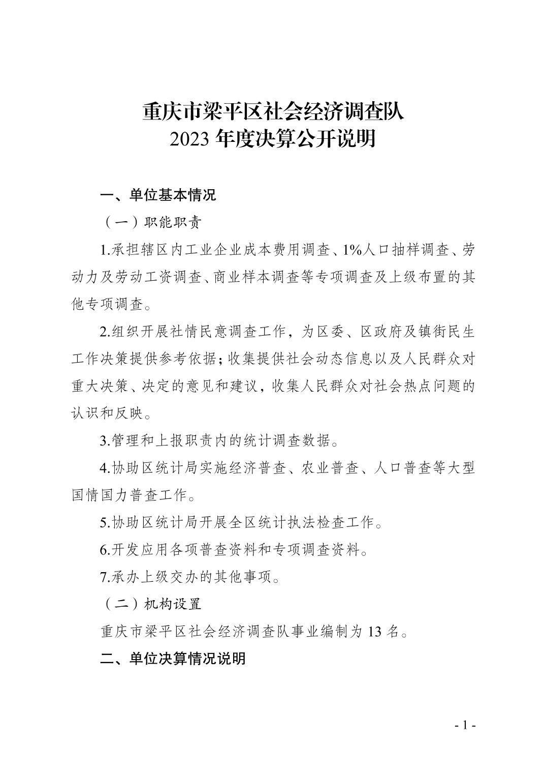 | 標題 | 重慶市梁平區社會經濟調查隊2023年度單位決算情況說明 |