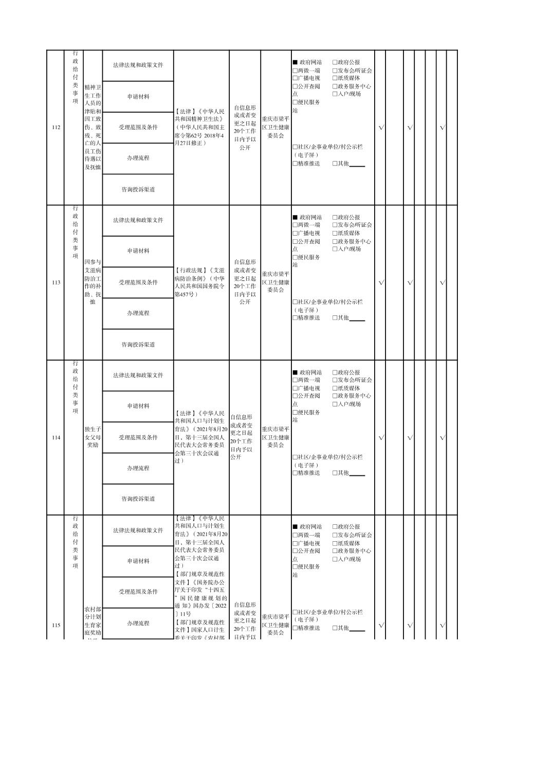 重慶市梁平區(qū)衛(wèi)生健康領(lǐng)域基層政務(wù)公開標(biāo)準(zhǔn)目錄