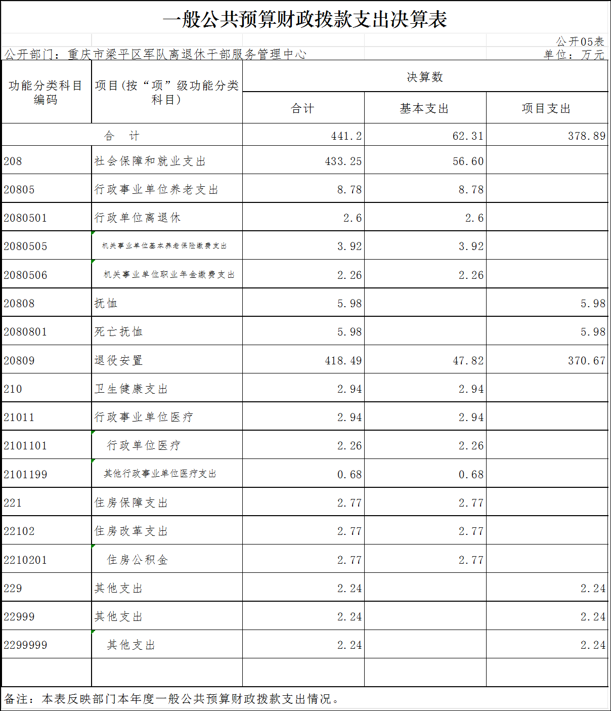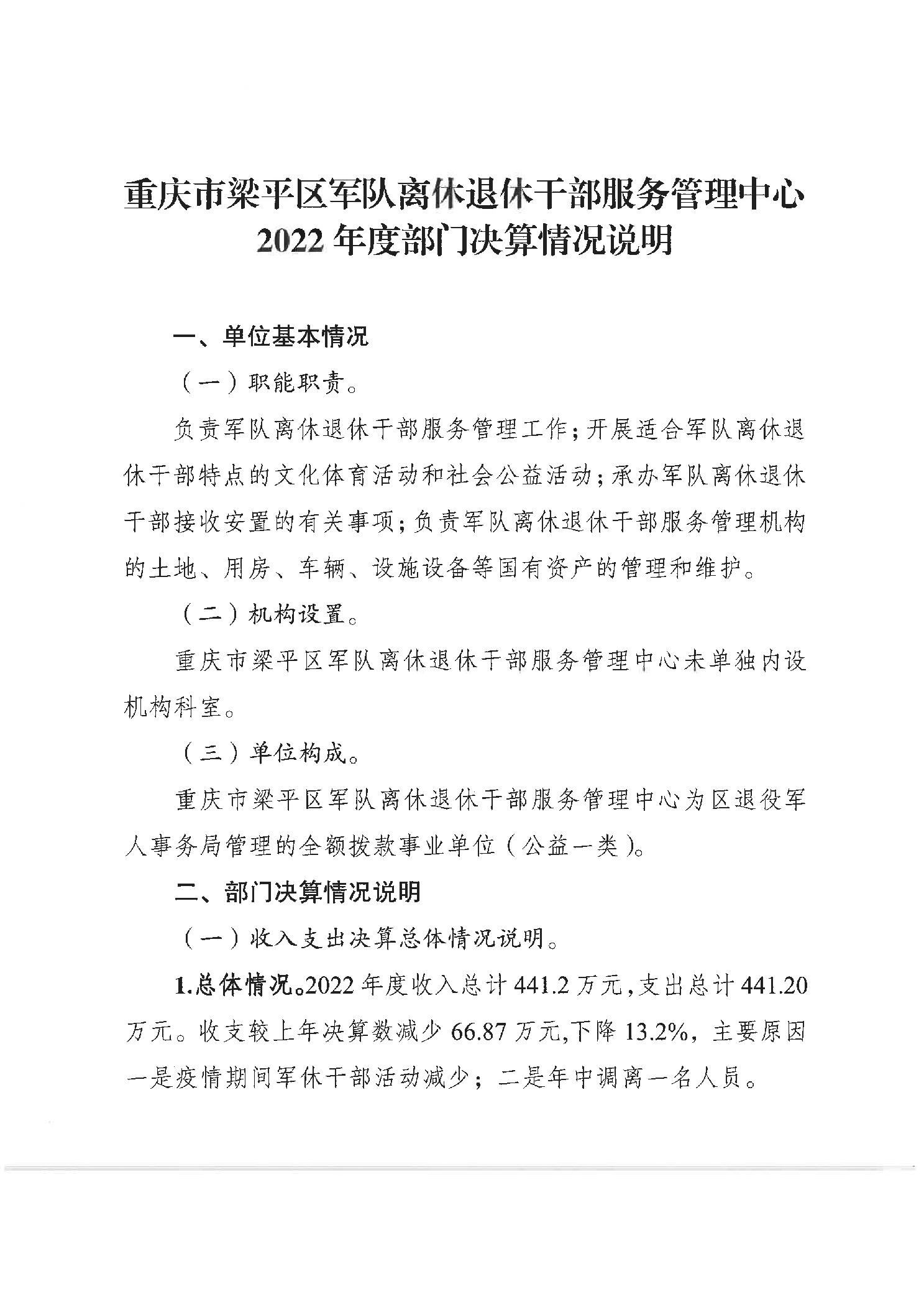 | 標(biāo)題 | 重慶市梁平區(qū)軍隊離休退休干部服務(wù)管理中心 2022年度部門決算情況說明 | ||