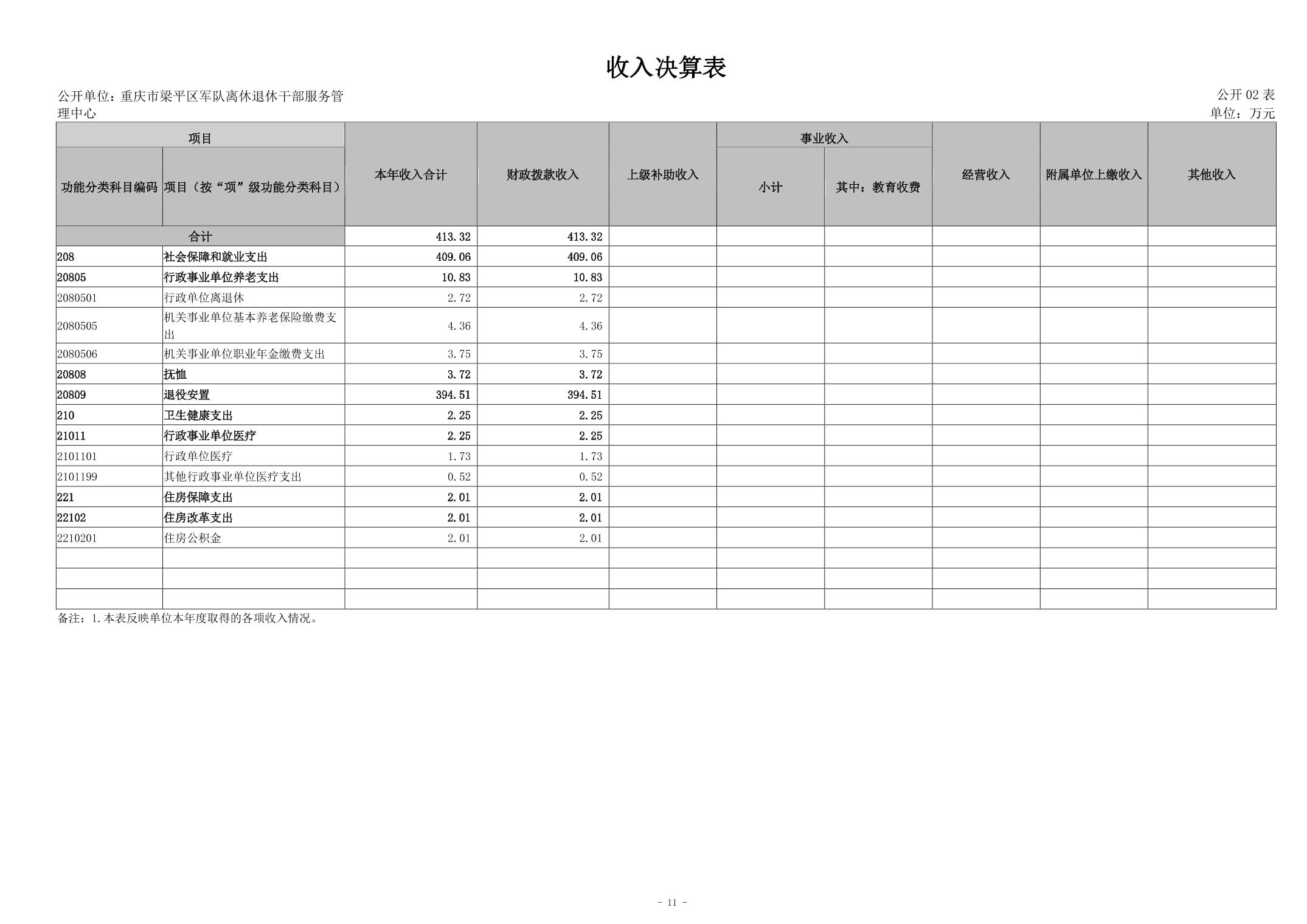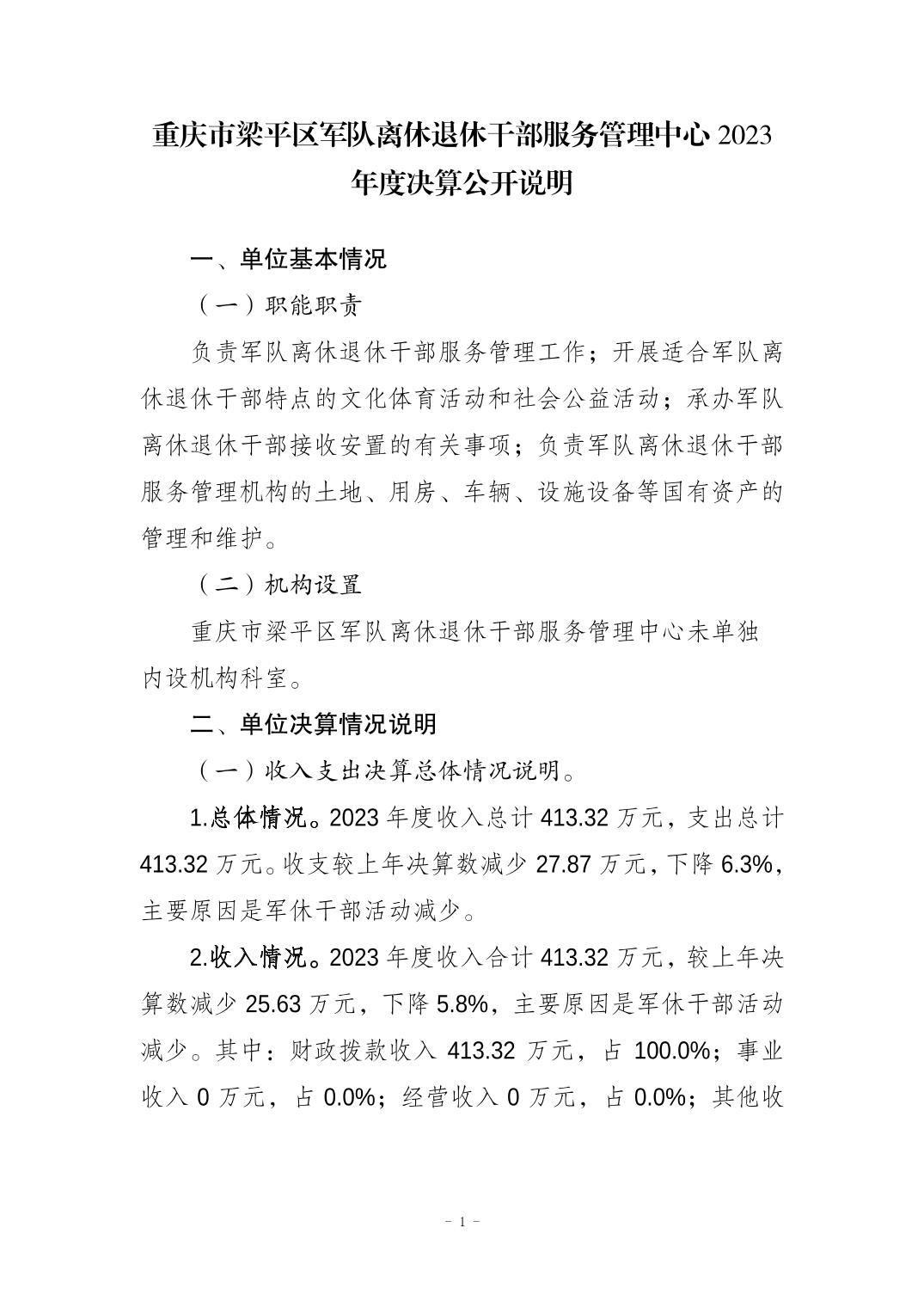 | 標題 | 重慶市梁平區軍隊離休退休干部服務管理中心2023年度決算公開說明 |
