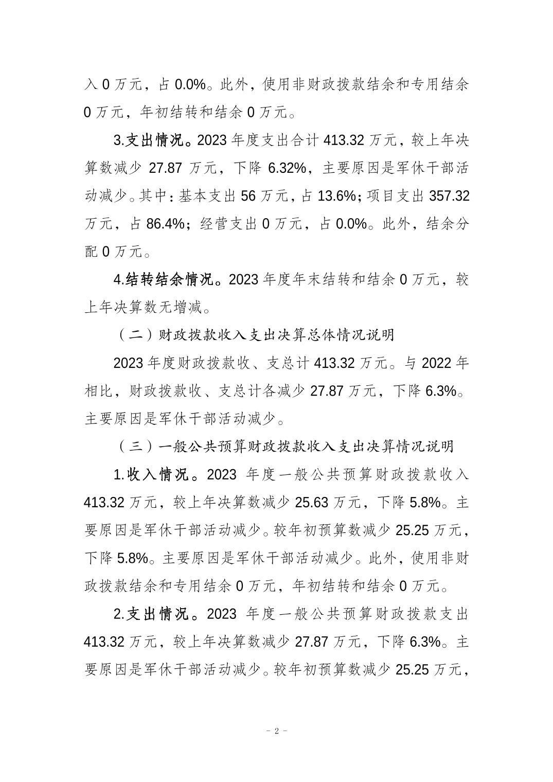 | 標題 | 重慶市梁平區軍隊離休退休干部服務管理中心2023年度決算公開說明 | ||