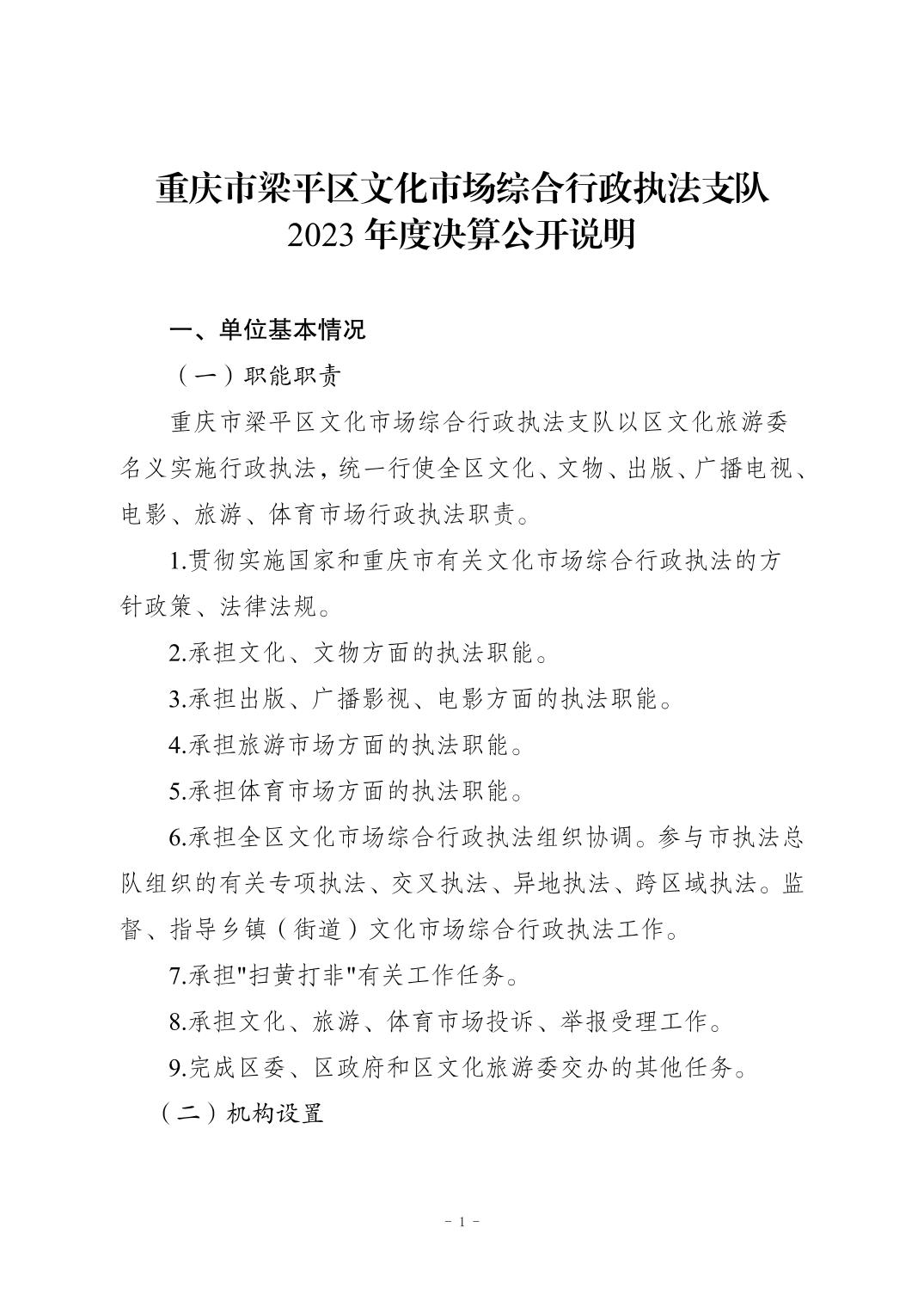 標(biāo)題 重慶市梁平區(qū)文化市場(chǎng)綜合行政執(zhí)法支隊(duì)2023年單位決算公開說明