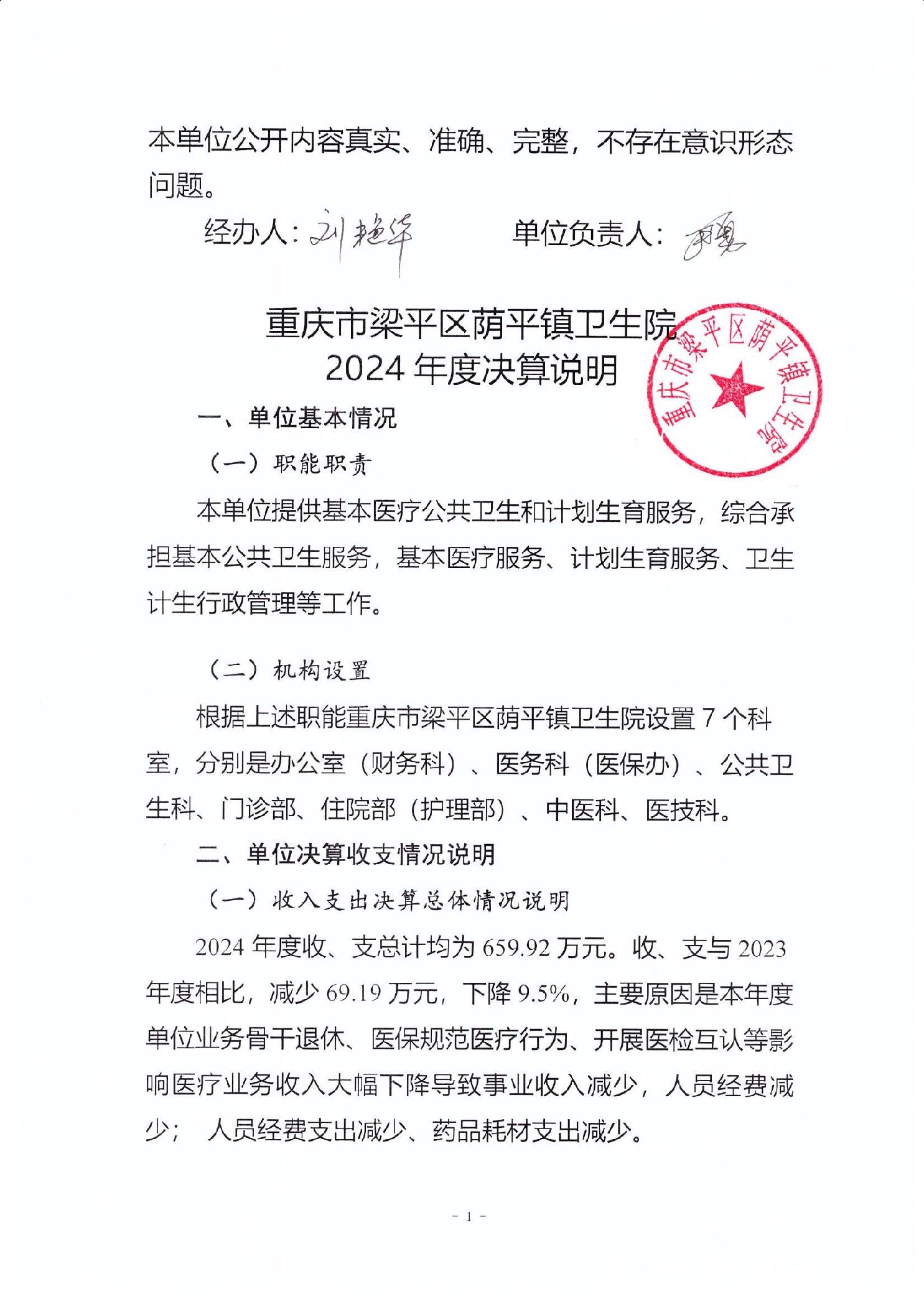 | 標(biāo)題 | 重慶市梁平區(qū)蔭平鎮(zhèn)衛(wèi)生院2024年度決算公開說明 |