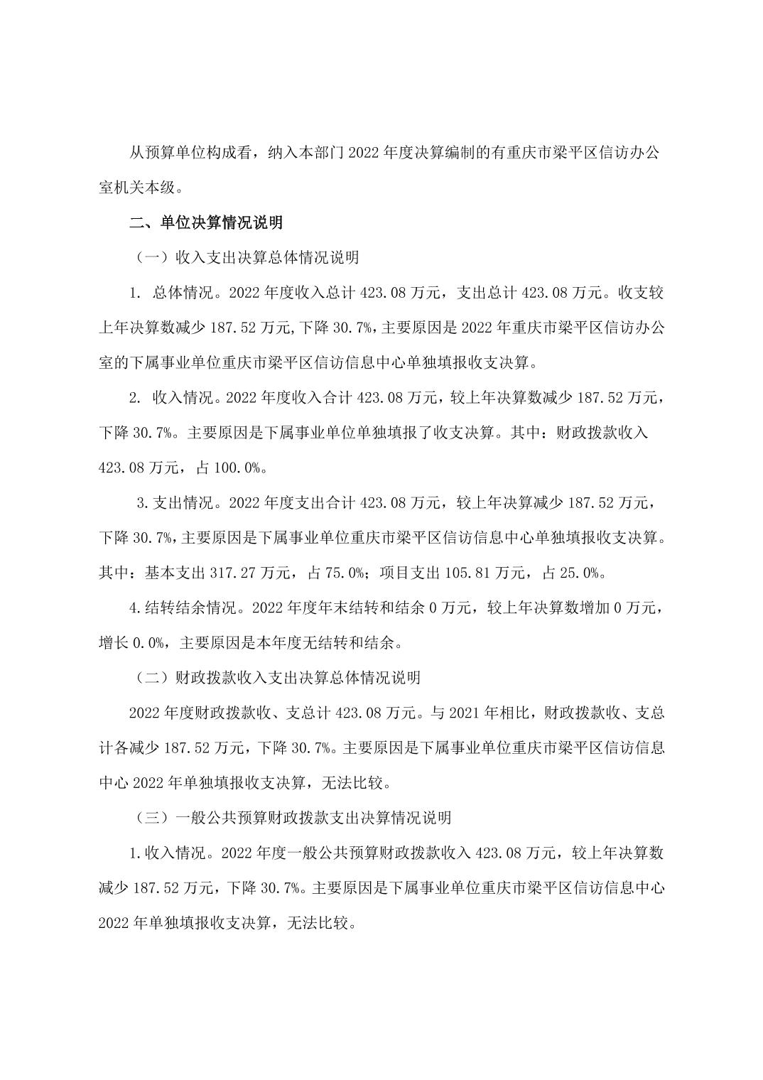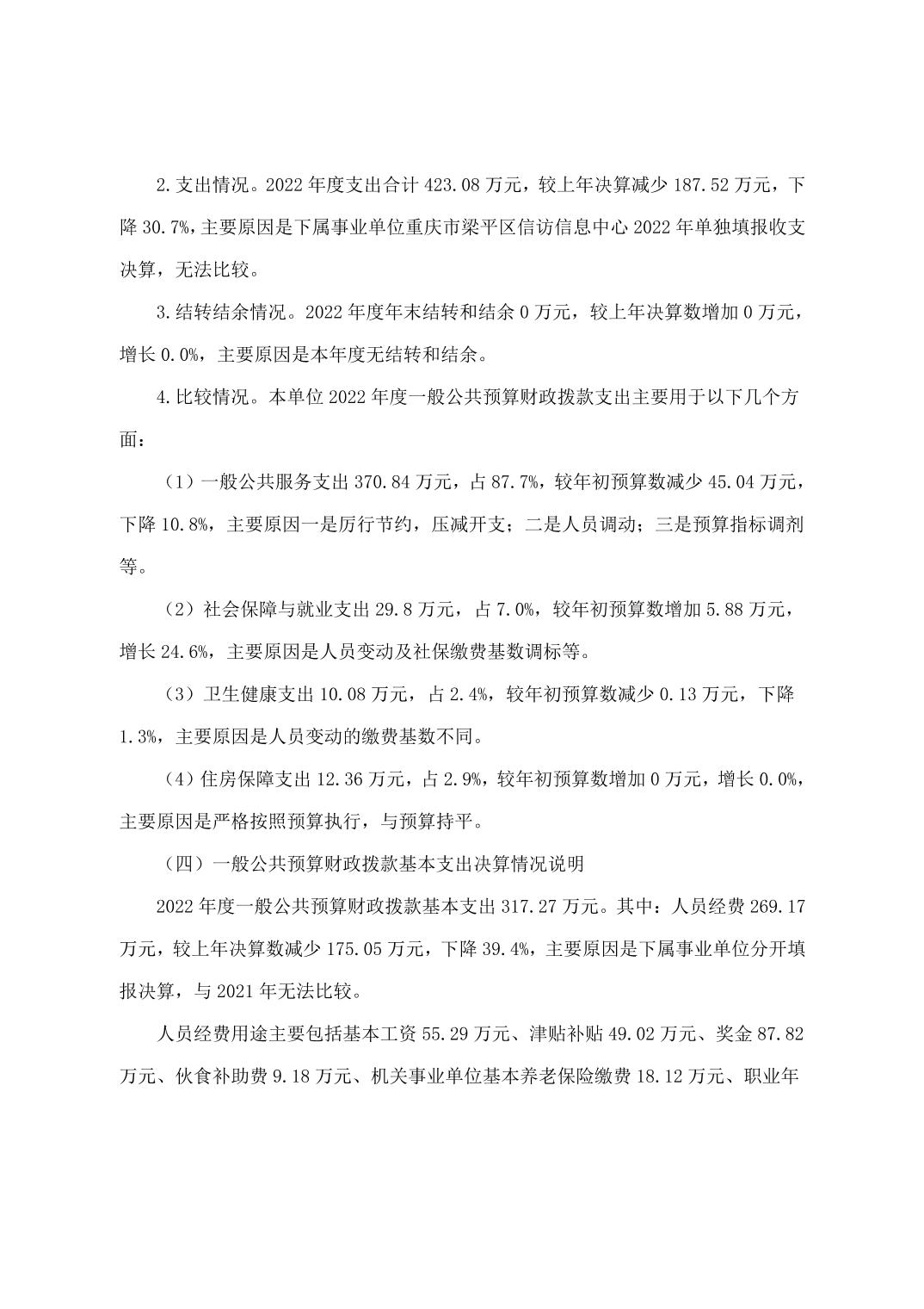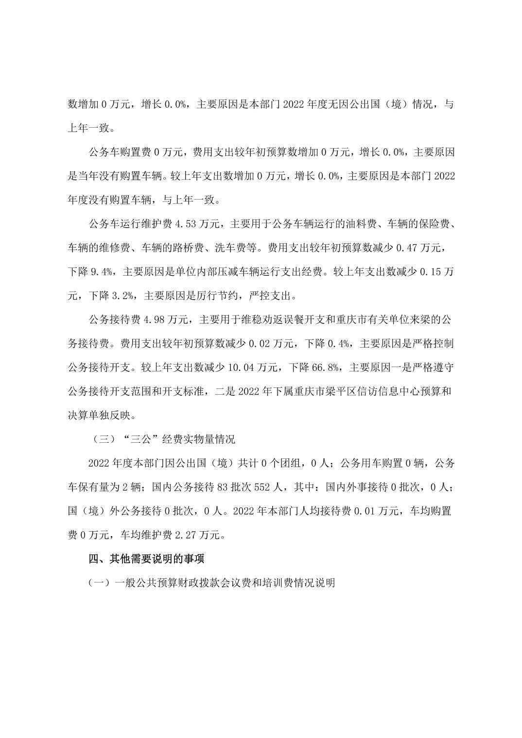 標題 重慶市梁平區信訪辦公室(本級)2022年度單位決算公開說明