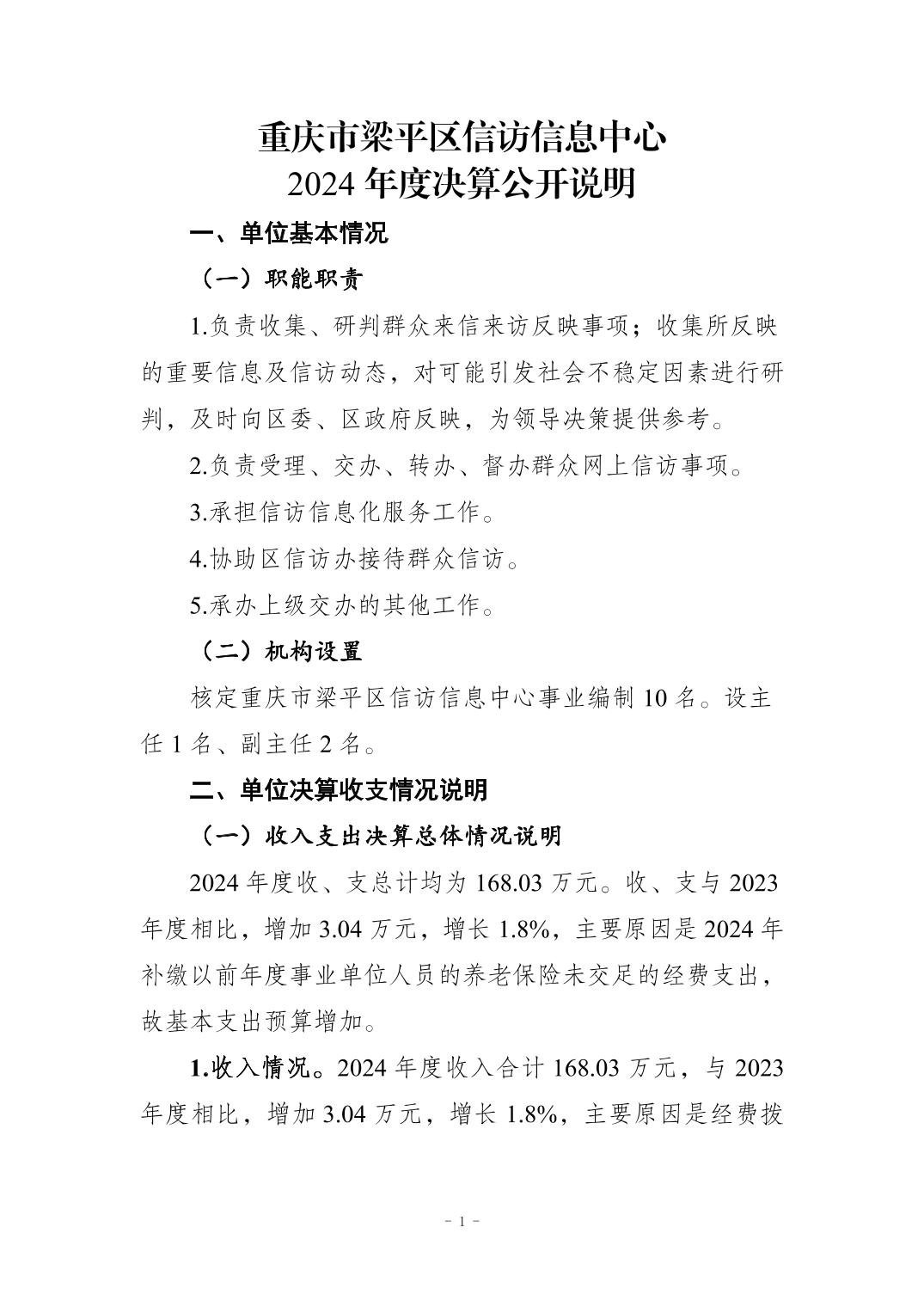 | 標題 | 重慶市梁平區信訪信息中心2024年度單位決算公開說明 |