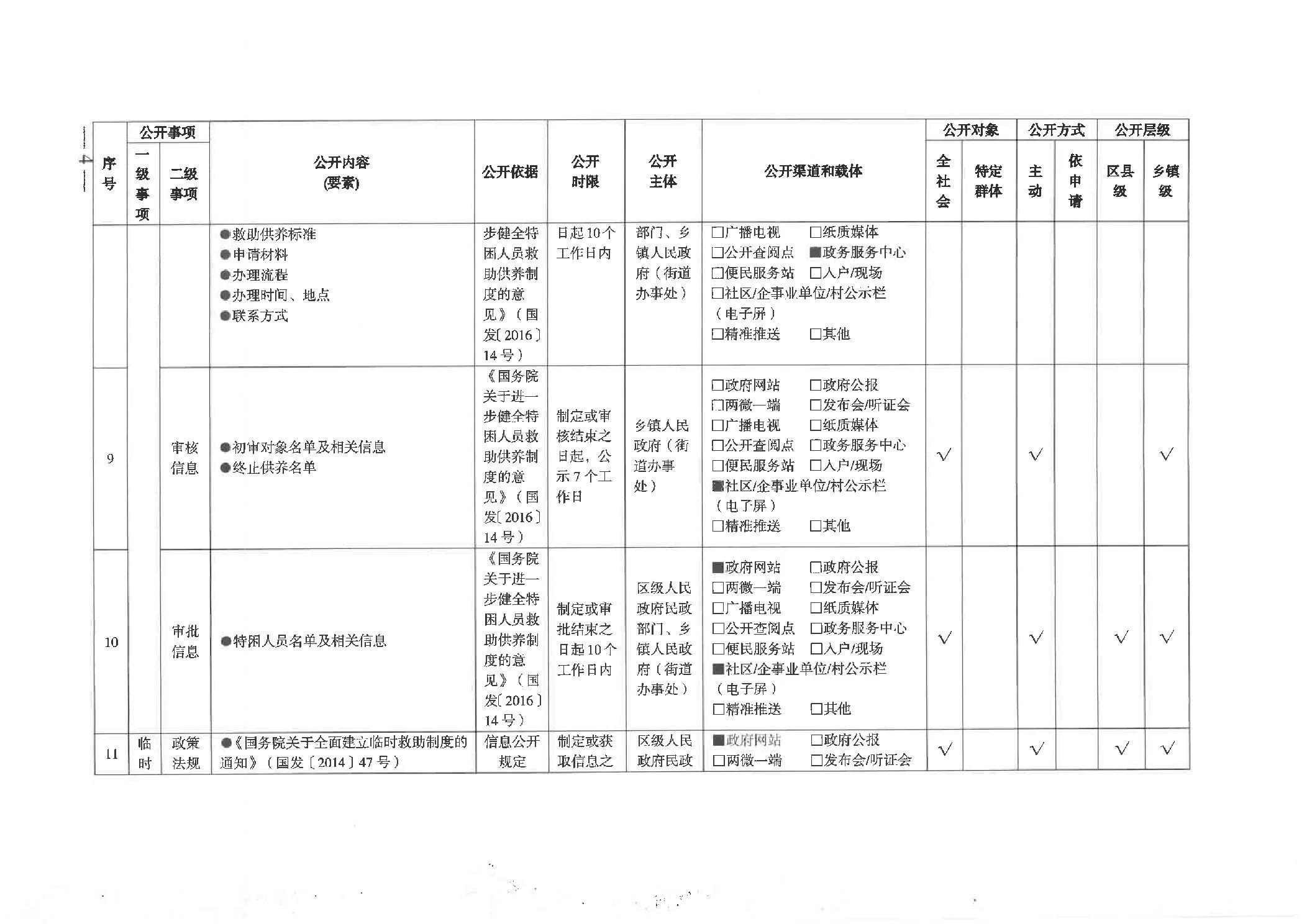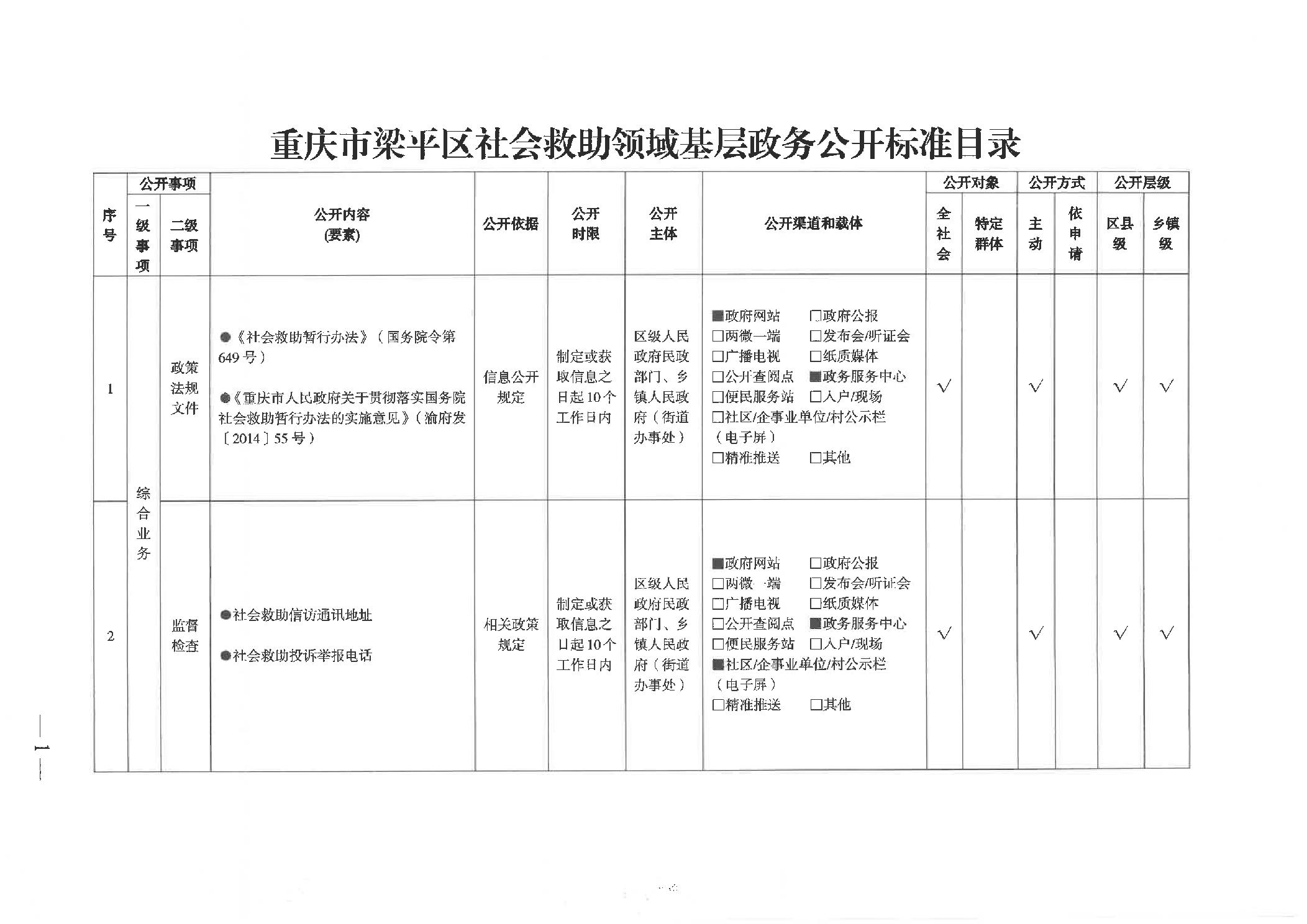 重慶市梁平區社會救助領域基層政務公開標準目錄
