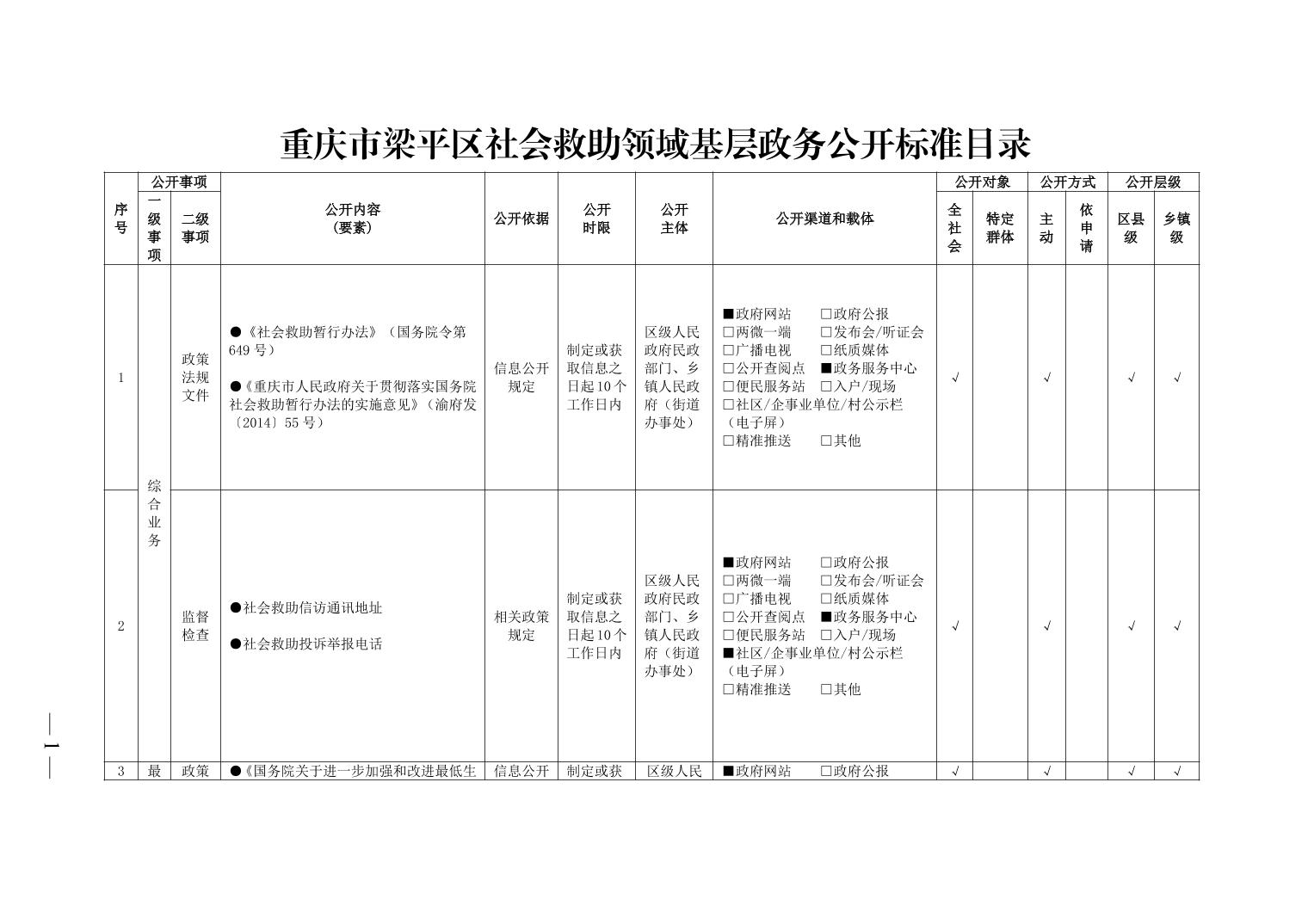 重慶市梁平區(qū)社會(huì)救助領(lǐng)域基層政務(wù)公開(kāi)標(biāo)準(zhǔn)目錄(2026年)