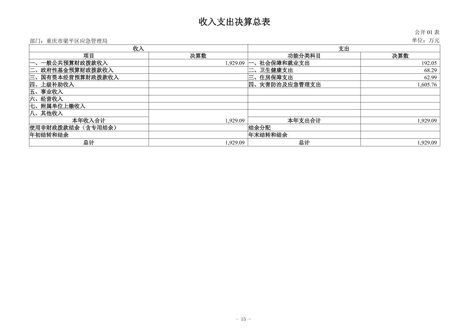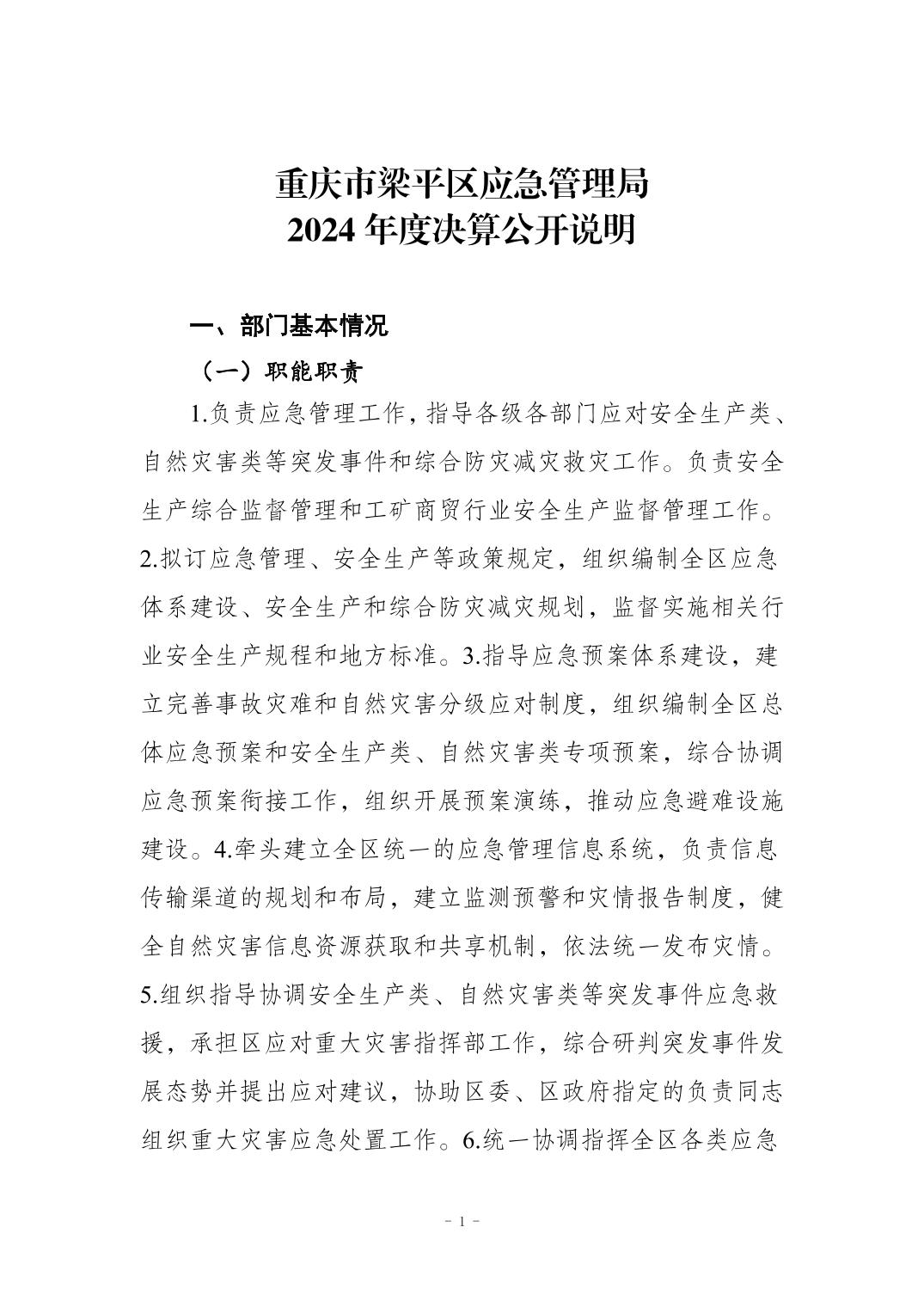 標(biāo)題 重慶市梁平區(qū)應(yīng)急管理局2024年度決算公開說明