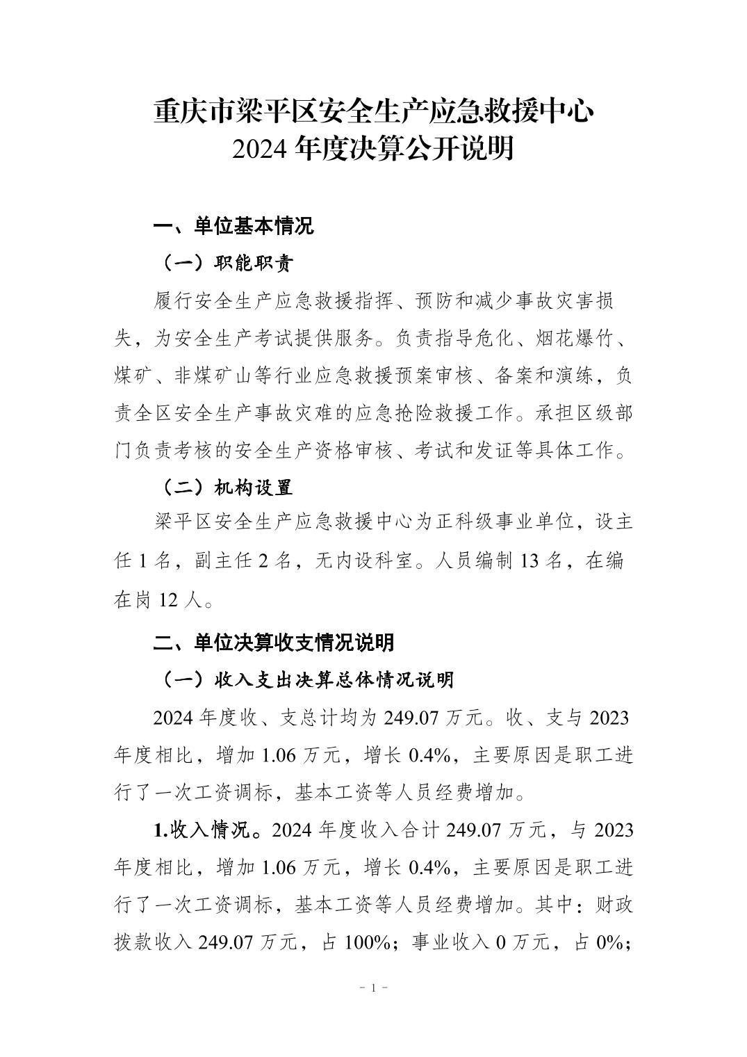標(biāo)題 重慶市梁平區(qū)安全生產(chǎn)應(yīng)急救援中心2024年度決算公開說明