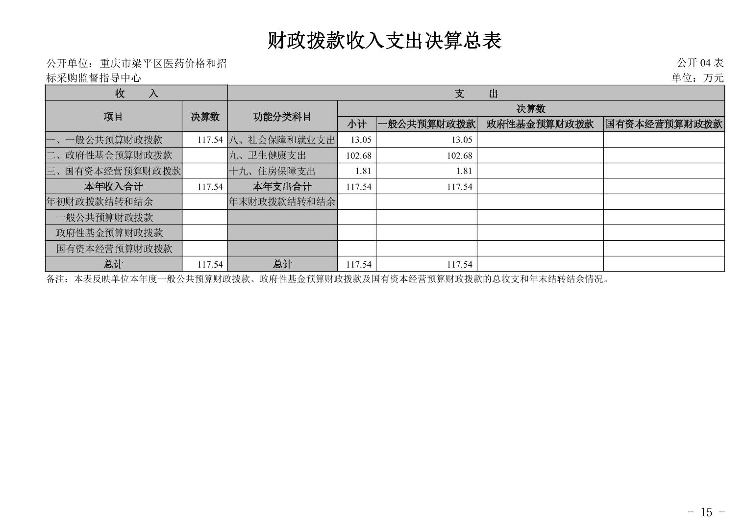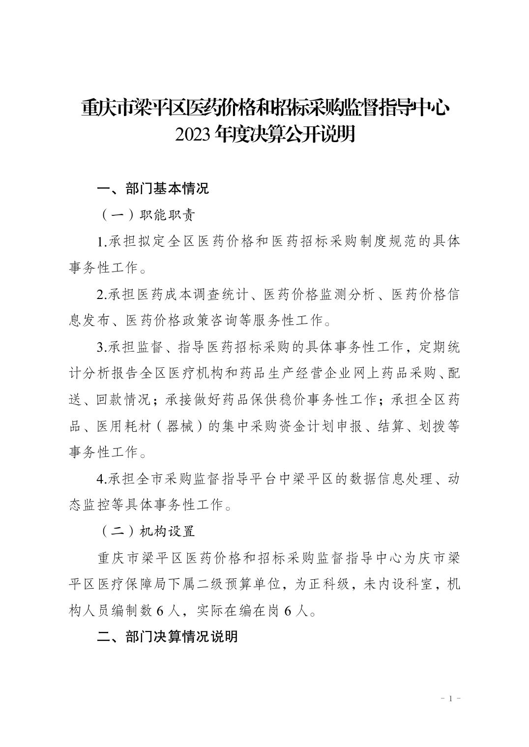 | 標題 | 重慶市梁平區醫藥價格和招標采購監督指導中心2023年度決算公開說明 |