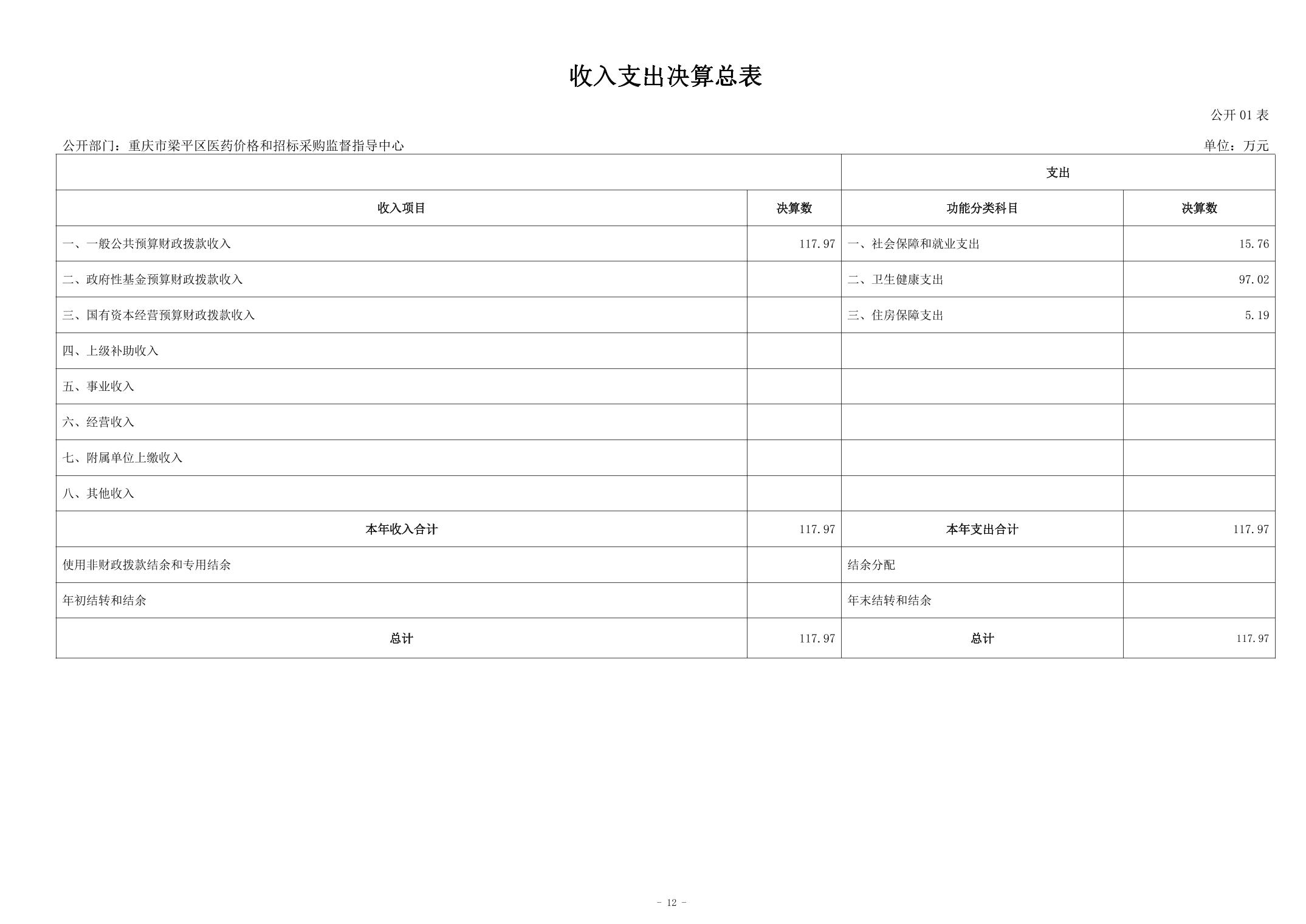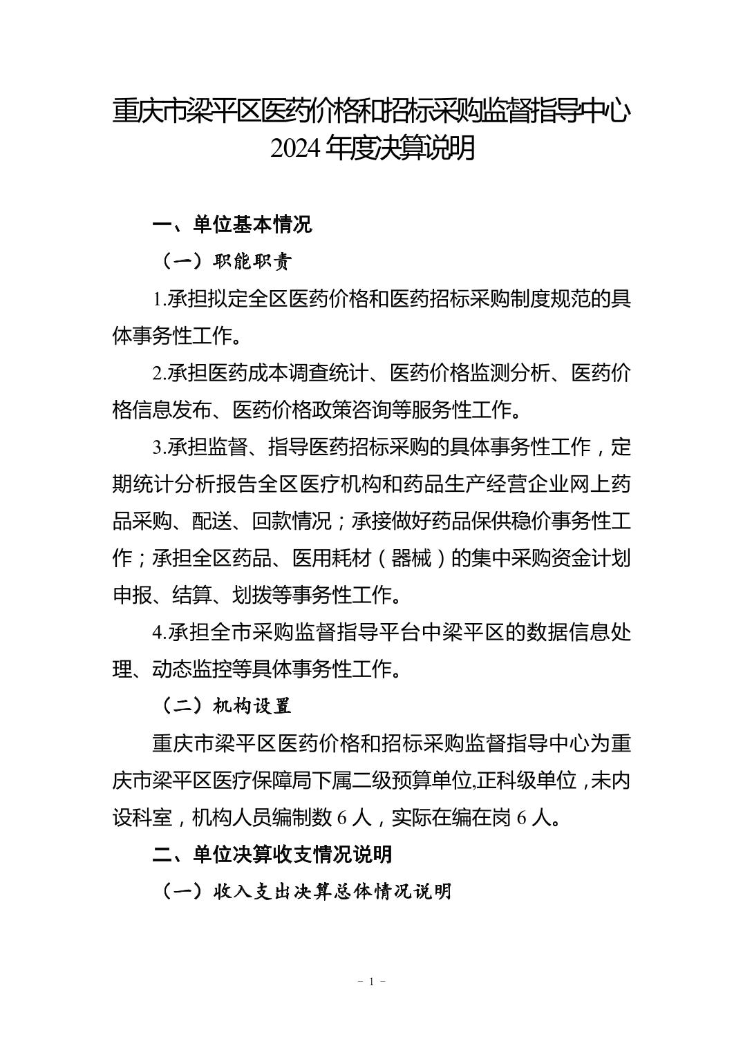 | 標題 | 重慶市梁平區醫藥價格和招標采購監督指導中心2024年度決算說明 |