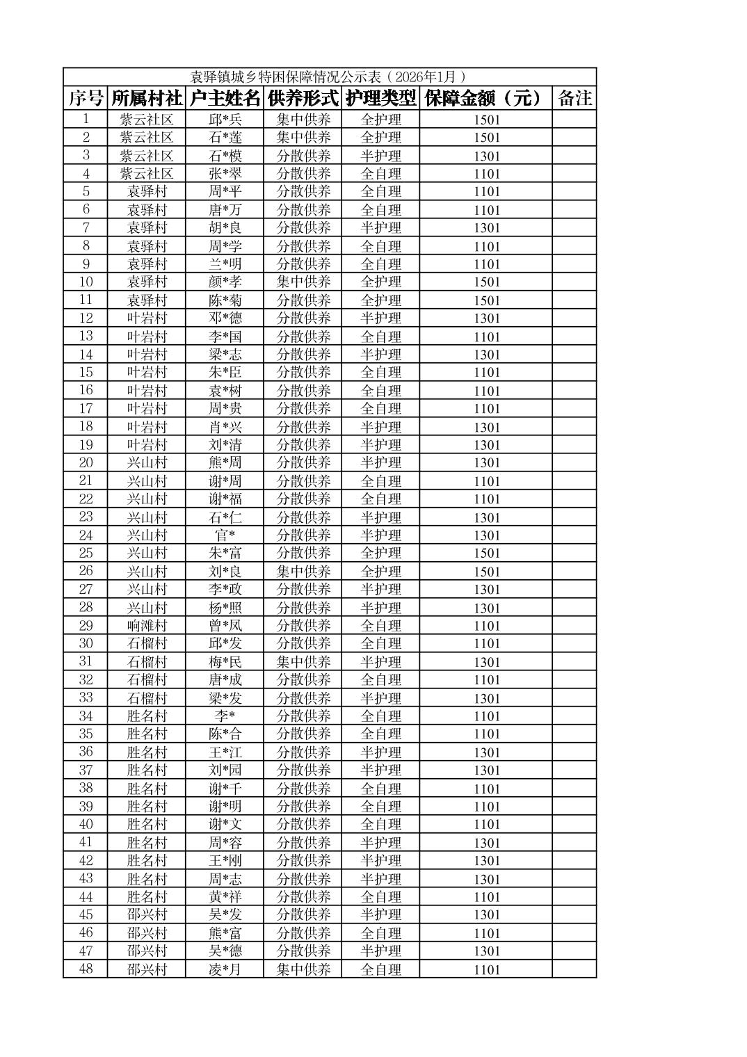 標題 袁驛鎮(zhèn)城鄉(xiāng)特困保障情況公示表(2026年1月)
