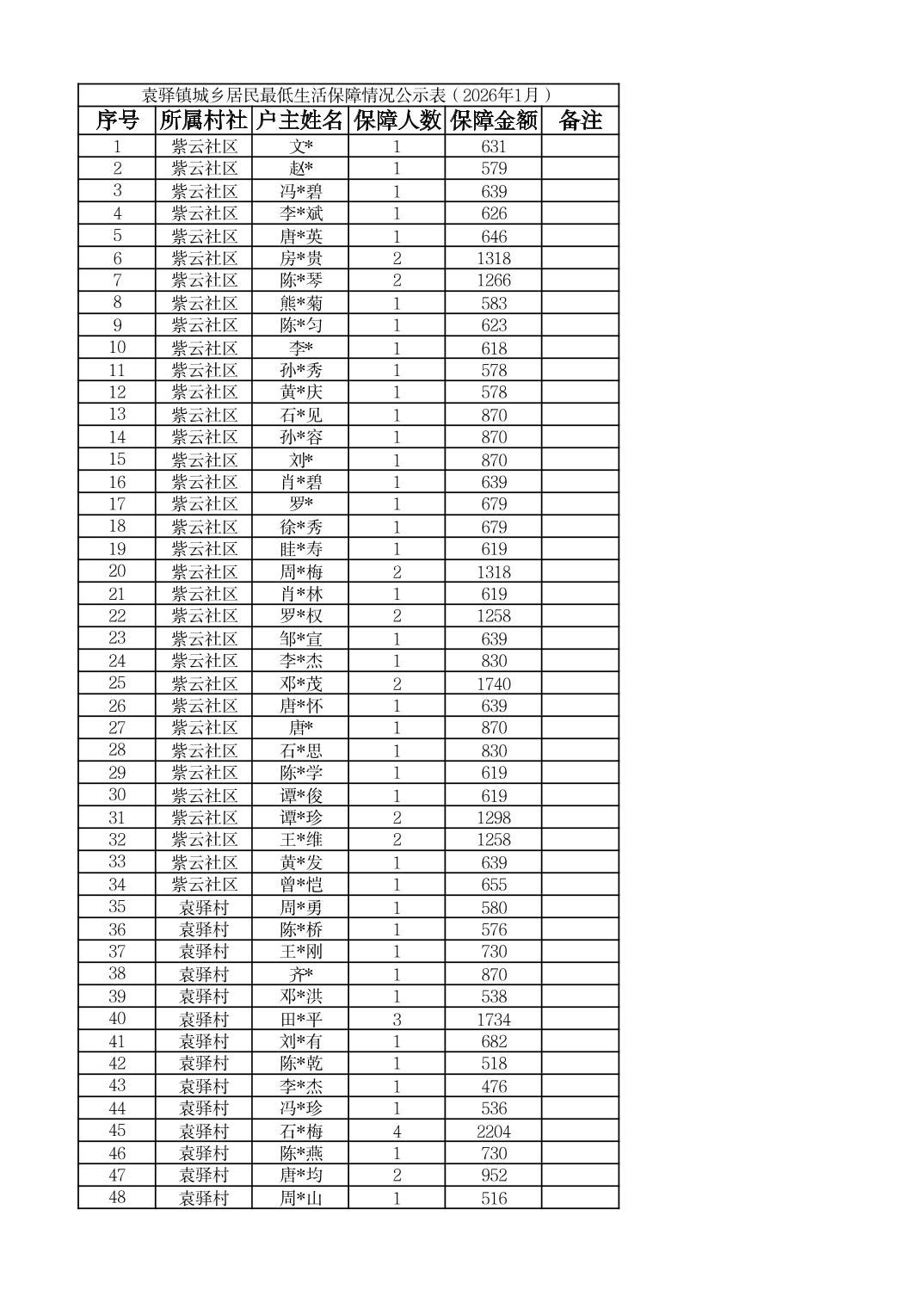 | 標題 | 袁驛鎮城鄉居民最低生活保障情況公示表(2026年1月) |