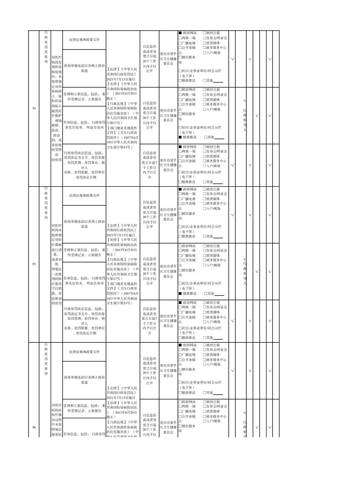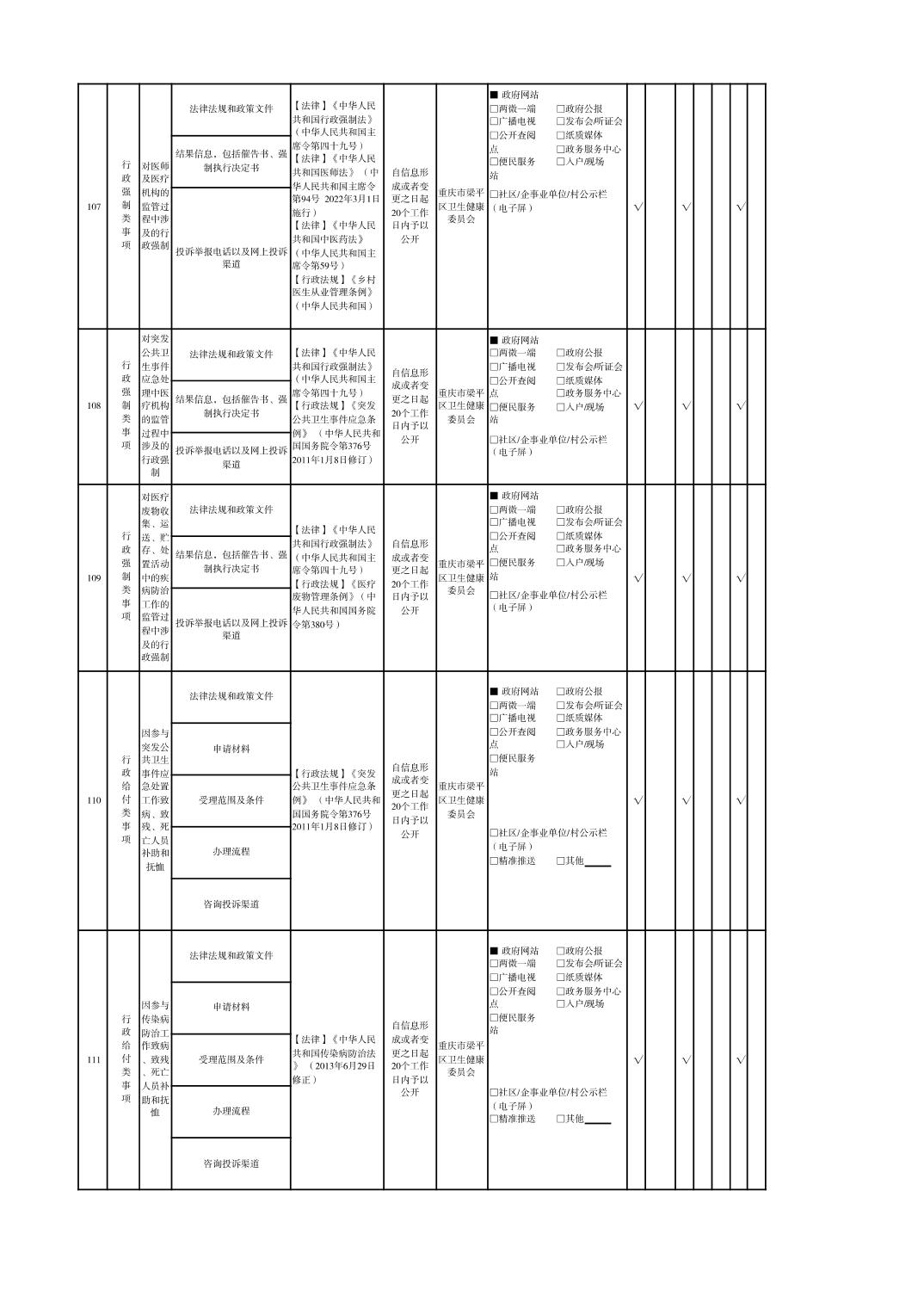 重慶市梁平區衛生健康領域基層政務公開標準目錄