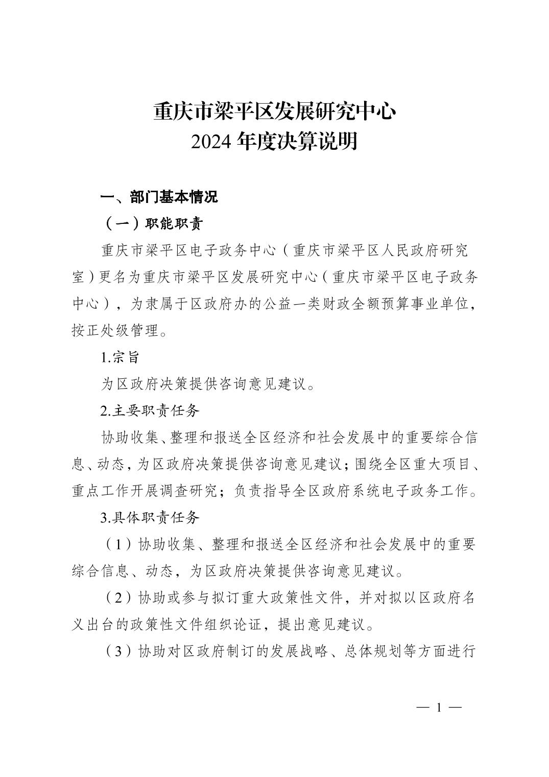 標(biāo)題 重慶市梁平區(qū)發(fā)展研究中心2024年度決算說明