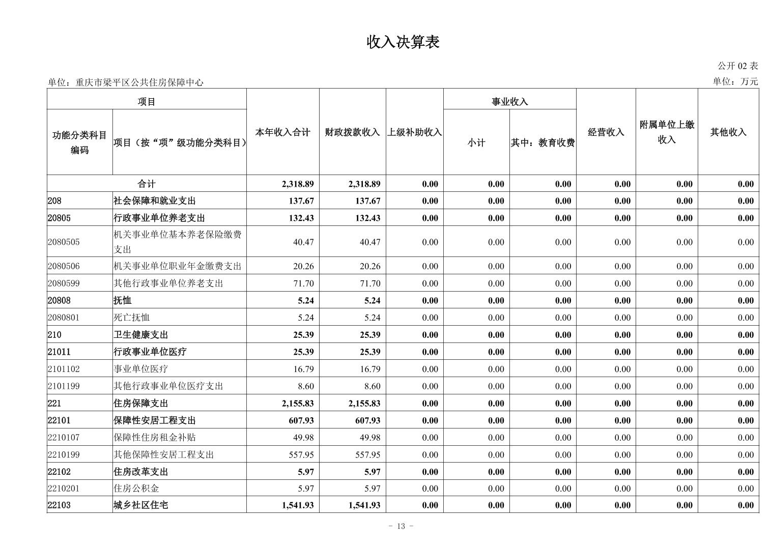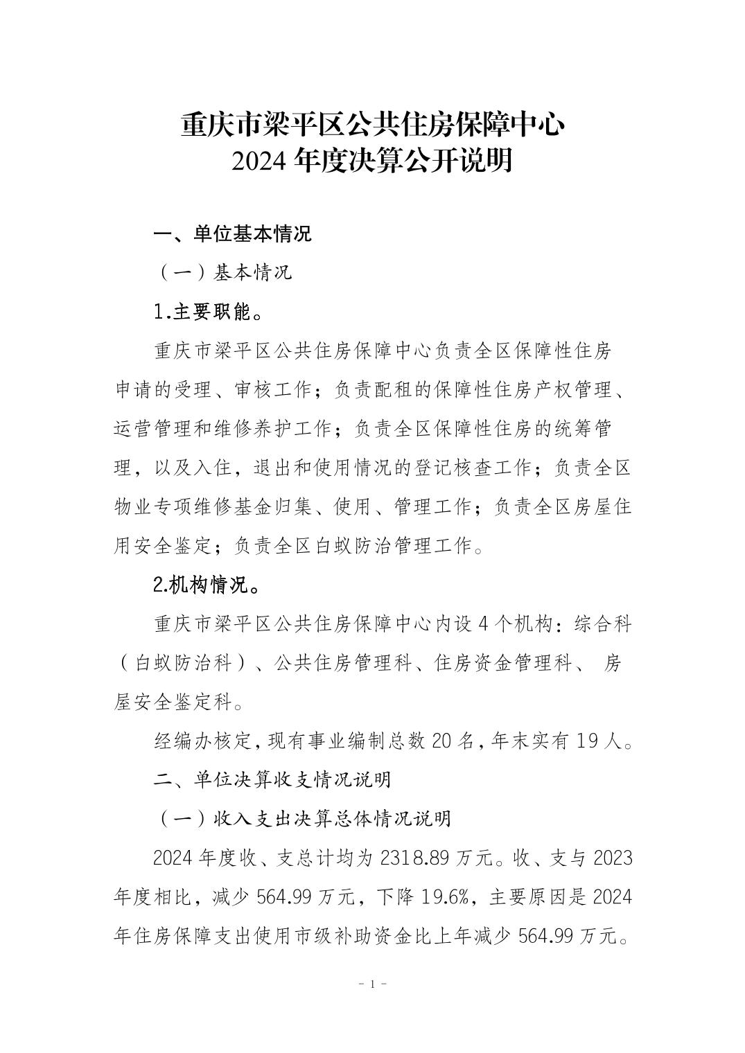 | 標(biāo)題 | 重慶市梁平區(qū)公共住房保障中心決算公開說明及公開報表(單位) | ||
