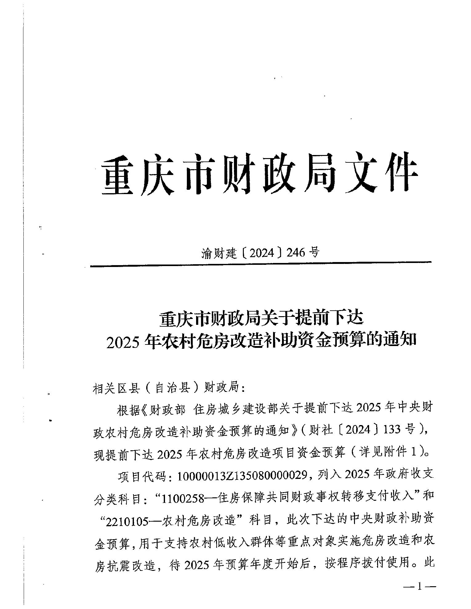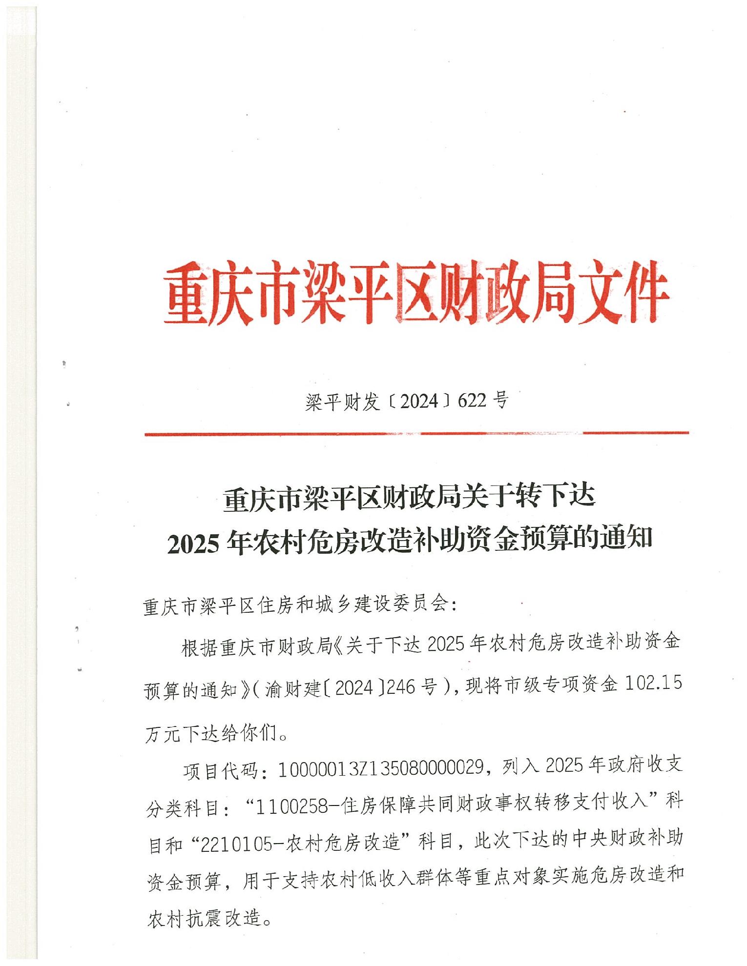標題 關于轉下達2025年農村危房改造補助資金預算的通知