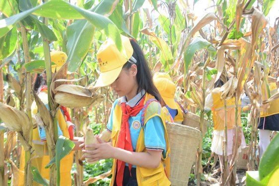 學(xué)生志愿者和鄉(xiāng)村兒童一起體驗(yàn)掰玉米活動(dòng)。(劉文靜 攝)